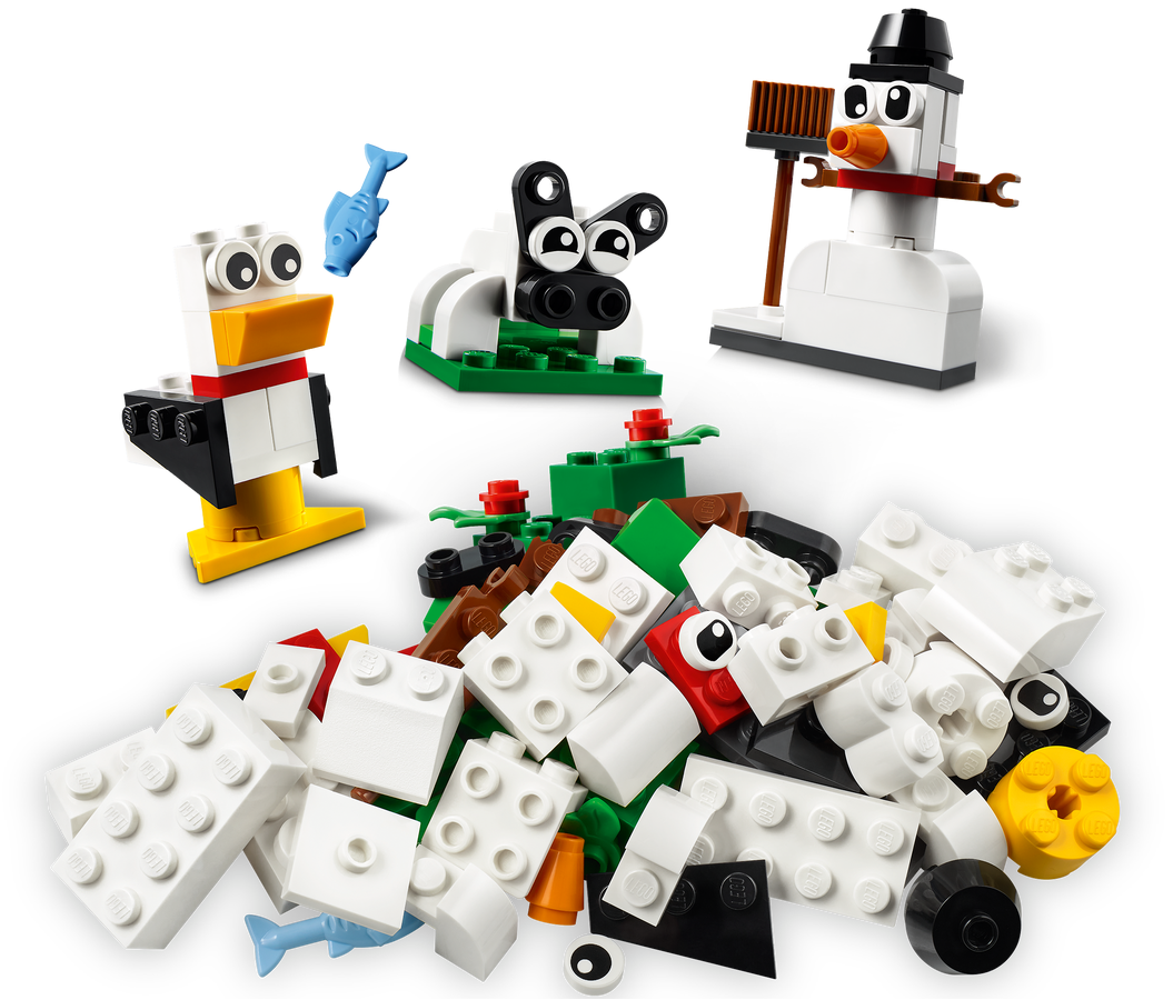 - Zestawem LEGO® Classic Kreatywne białe klocki (11012) mogą bawić się dzieci już od czwartego roku życia. W komplecie są trzy łatwe do zbudowania modele, które pomogą rozpocząć kreatywne budowanie.