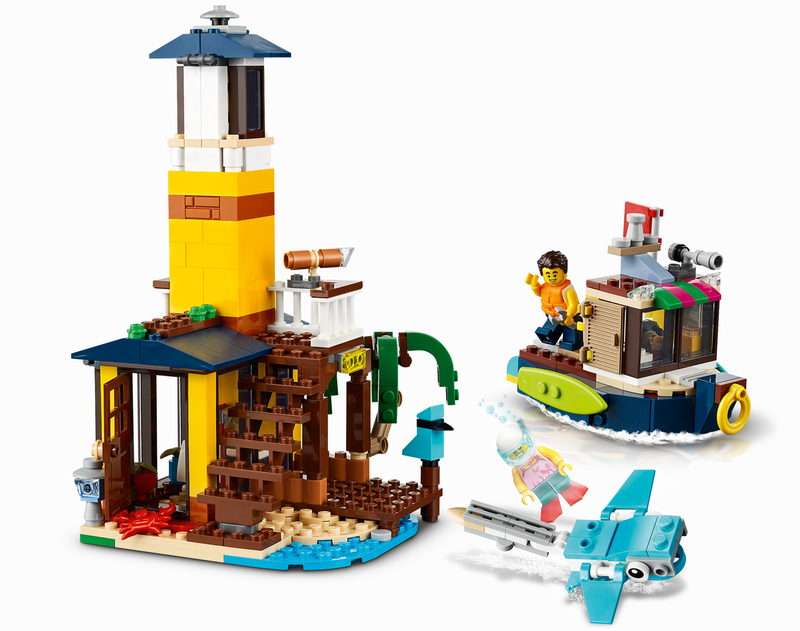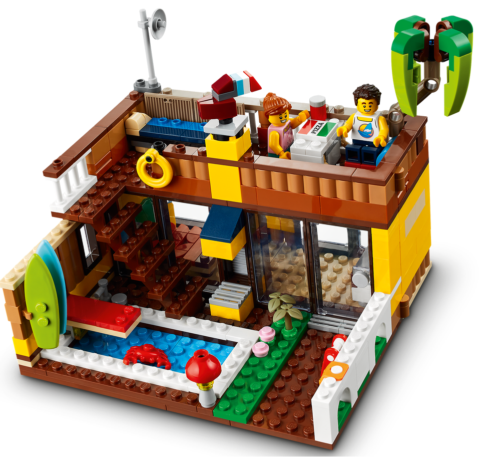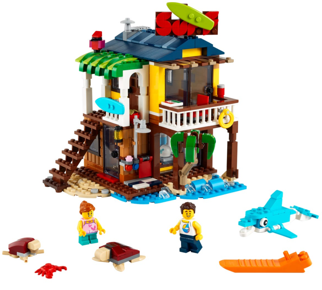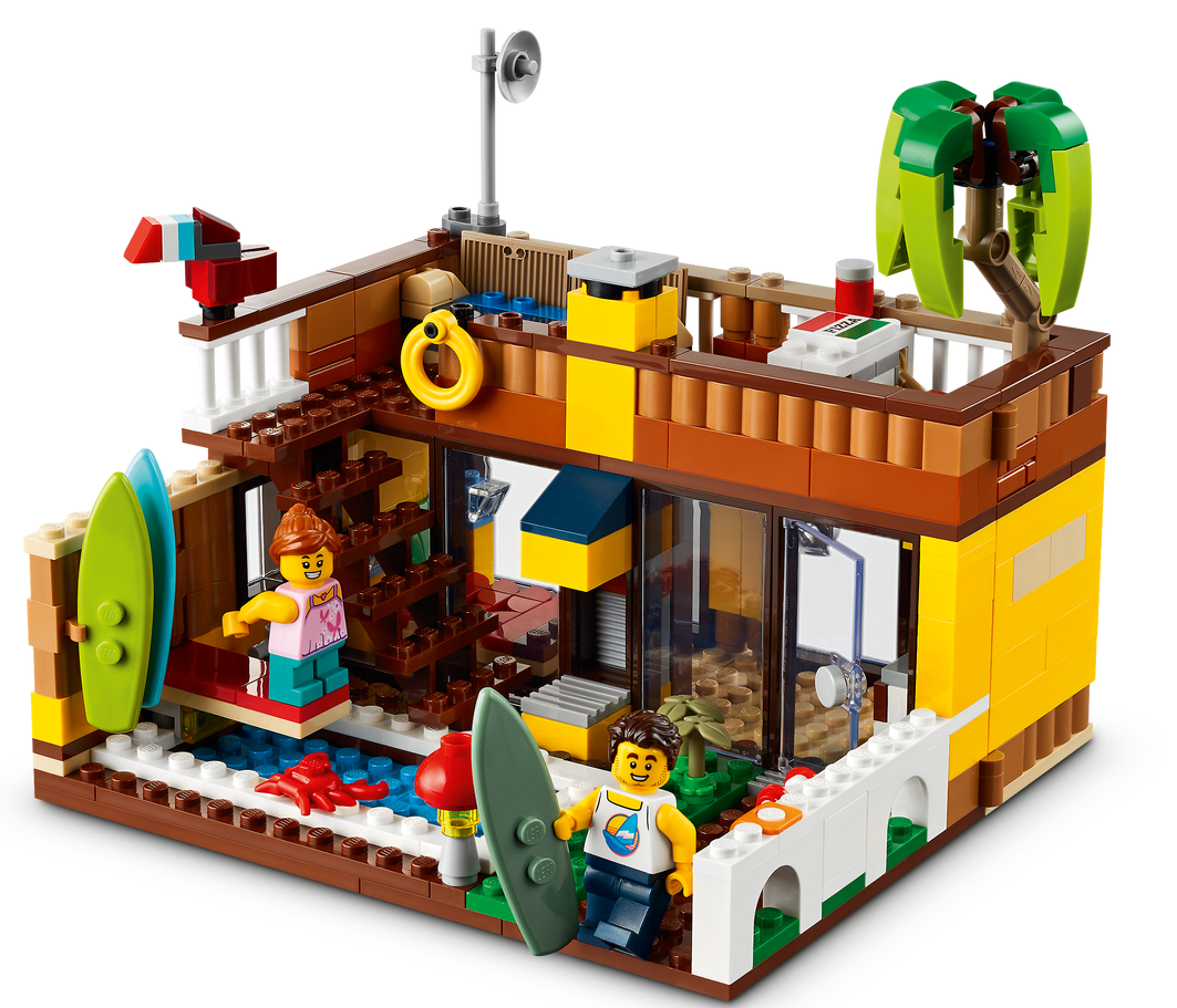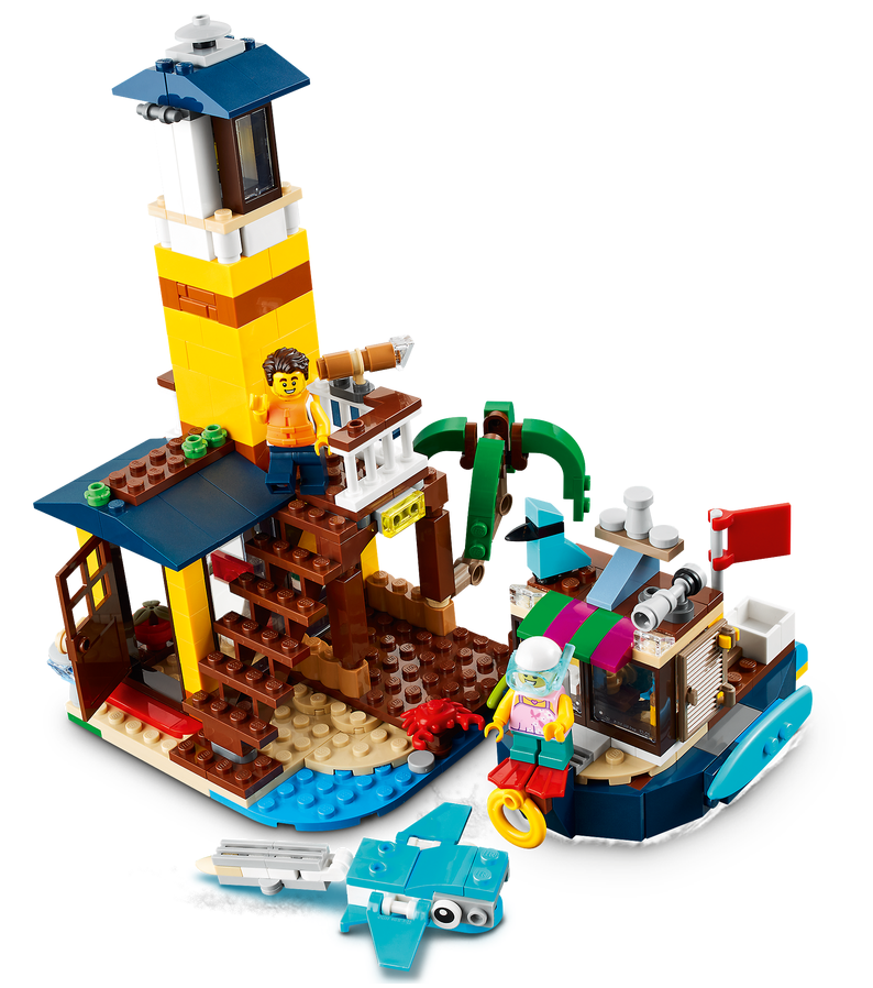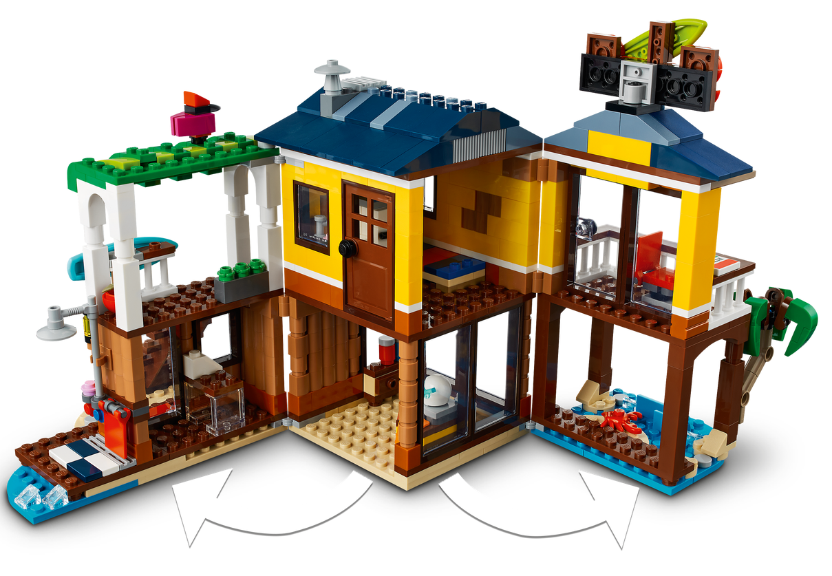 - Zestaw LEGO® Creator 3 w 1 Domek surferów na plaży (31118) przykuje uwagę dzieci na wiele godzin. Jeden komplet klocków pozwala zbudować trzy modele: domek surferów, latarnię morską i dom z basenem.