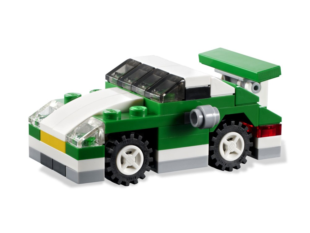 Gotowi...start! Pędź ulicami małym samochodem z wymalowanymi pasami i tylnym spojlerem! Możesz go też przerobić na gokart lub ciężarówkę. Zestaw znajduje się w wygodnej puszce do wielokrotnego użycia.