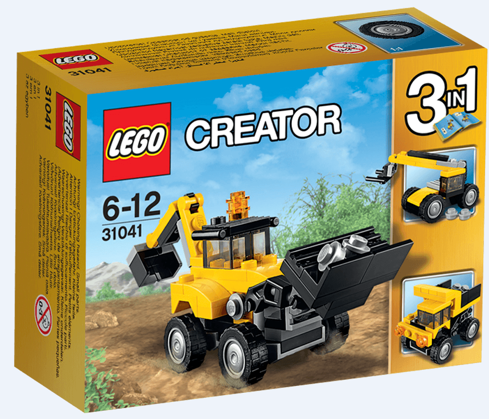 Koparko-ładowarka poradzi sobie nawet z najtrudniejszymi zadaniami. Jak przystało na maszynę tego typu, jest pomalowana w czarno-żółte barwy. Ma też pomarańczową lampę ostrzegawczą, ruchomy lemiesz z przodu, działające ramię z łyżką z tyłu, kabinę operatora i solidne opony z głębokim bieżnikiem. Ustaw się odpowiedniej pozycji, opuść lemiesz i zacznij zgarniać gruz! Gdy nabierzesz ochoty na kolejne wyzwanie, przerób spychacz na potężną wywrotkę albo ładowarkę teleskopową z długim ramieniem.