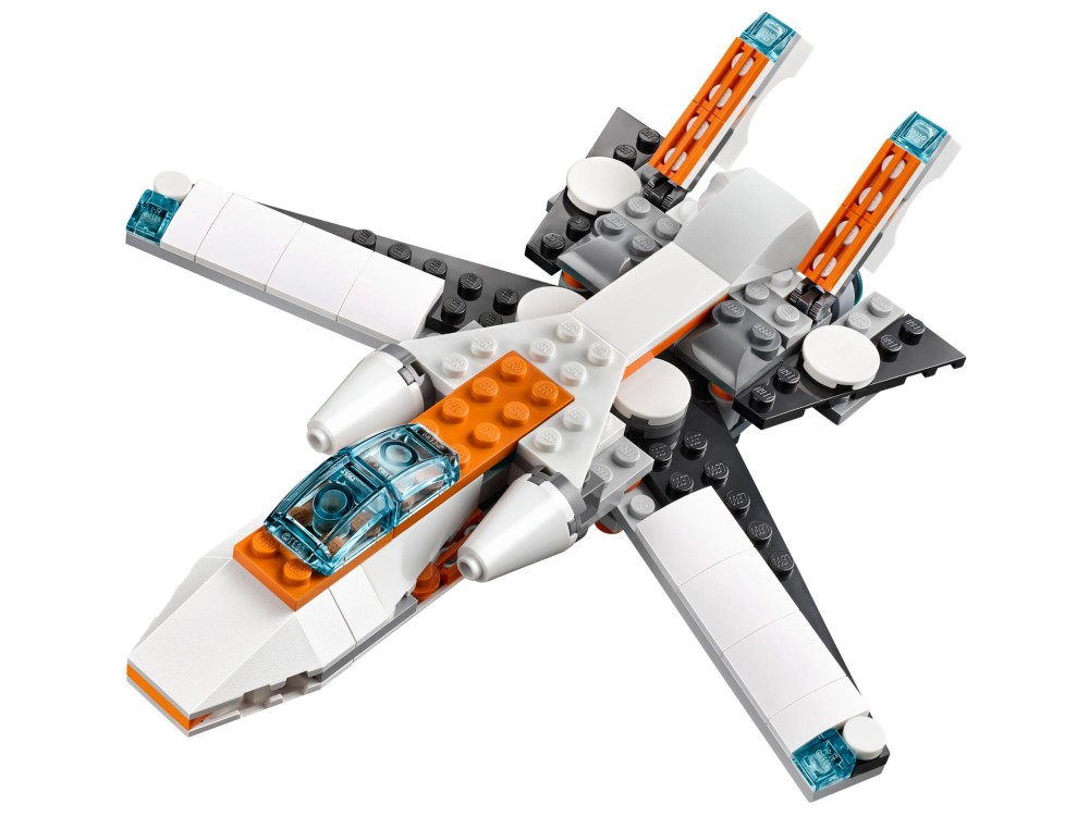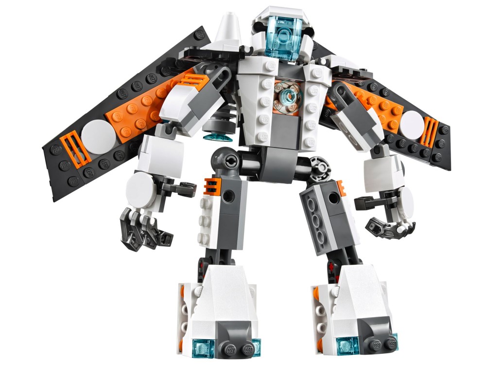 Wkrocz w przyszłość wraz z niesamowitym robotem LEGO® Creator typu 3 w 1. Ten robot jest przygotowany do każdej akcji. Jego główne cechy to niezwykle efektowna futurystyczna kolorystyka łącząca pomarańcz, biel i czerń, duża mechaniczna głowa z jednym niebieskim okiem, zdejmowany plecak z rozkładanymi skrzydłami i zdejmowanymi dopalaczami rakietowymi. Dysponuje on także dużymi mechanicznymi stopami z wbudowanymi dopalaczami rakietowymi, metalicznymi palcami o ciemnym kolorze, pancernymi naramiennikami oraz dużą liczbą stawów o regulowanym położeniu.