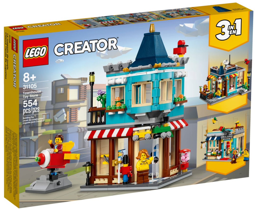 - Jak powiększyć miasto? Sklep z zabawkami Creator 3 w 1 (31105), tłoczna cukiernia i kwiaciarnia pomogą dzieciom rozwinąć kreatywność oraz umiejętności konstrukcyjne oraz uruchomić wyobraźnię poprzez budowanie nowych modeli.