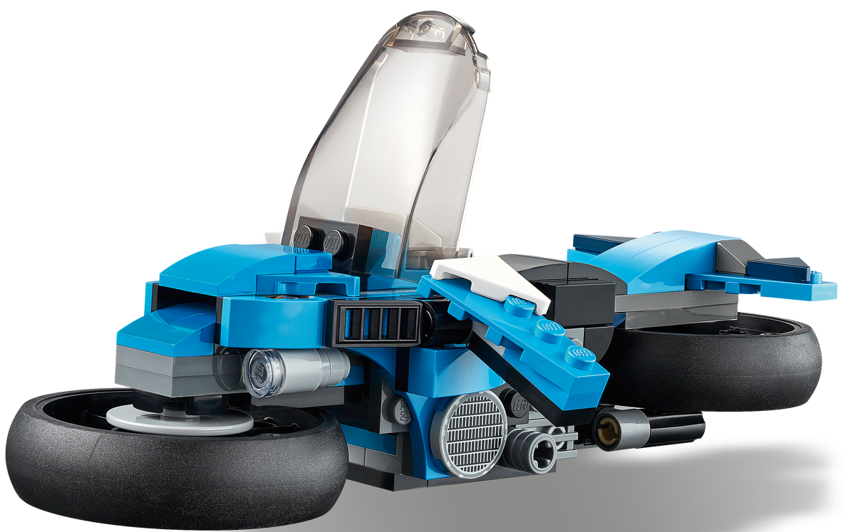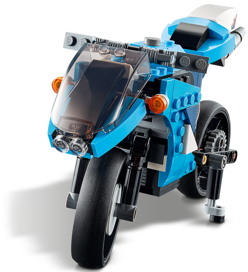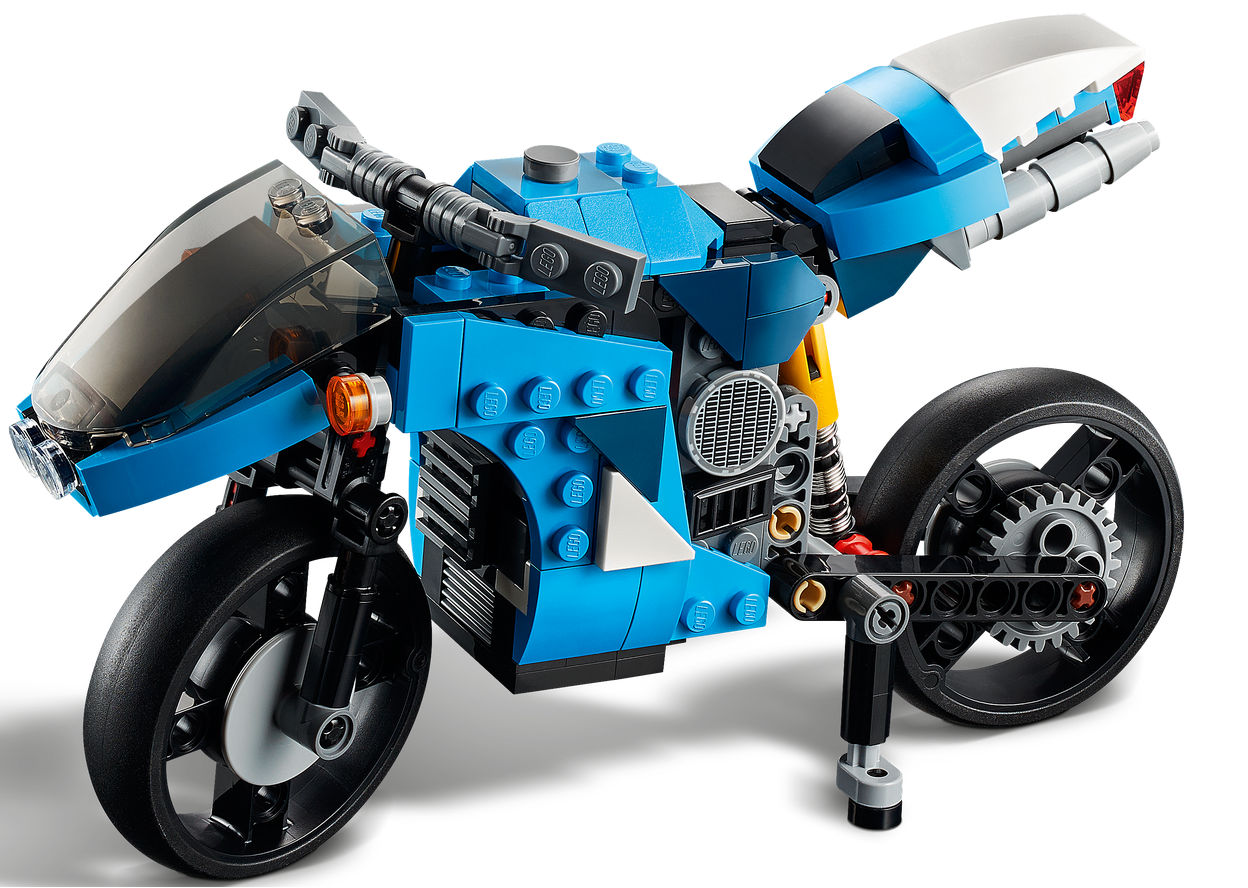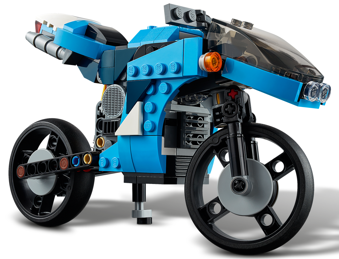 Ten zestaw LEGO Creator 3 w 1 to potrójna dawka budowania i zabawy. Dzieci mogą złożyć nowoczesny supermotocykl, a potem przerobić go na klasyczną maszynę lub futurystyczny latający motocykl, którym polecą szukać powietrznych przygód. Mogą też zbudować coś zupełnie innego — granicą jest tylko wyobraźnia!