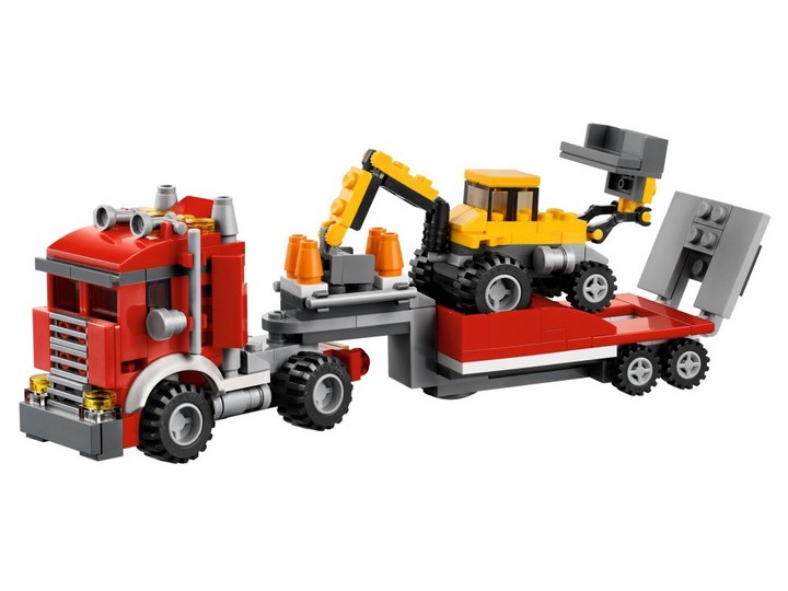 Transporter 3w1 31005 to pojazd przeznaczony do ciężkiej pracy! Przygotuj się na głębokie wykopy z wywrotką o wielu ruchomych elementach! Rozstaw pachołki ostrzegawcze, opuść rampę i wyładuj koparkę! Ruszaj do pracy, używając przedniej i tylnej ruchomej łyżki. Zestaw zawiera realistyczne szczegóły, w tym realistyczną osłonę chłodnicy, światła ostrzegawcze i sygnał dźwiękowy. Przebuduj model w wytrzymały pojazd z obrotowym, ruchomym wysięgnikiem lub w transporter terenowy z lekkim łazikiem, rampą i kołem zapasowym.