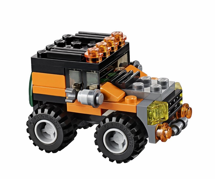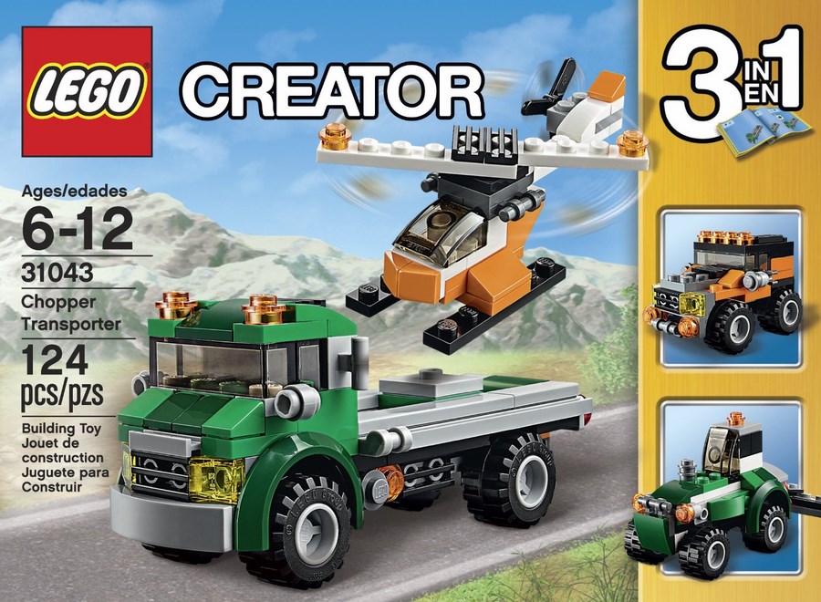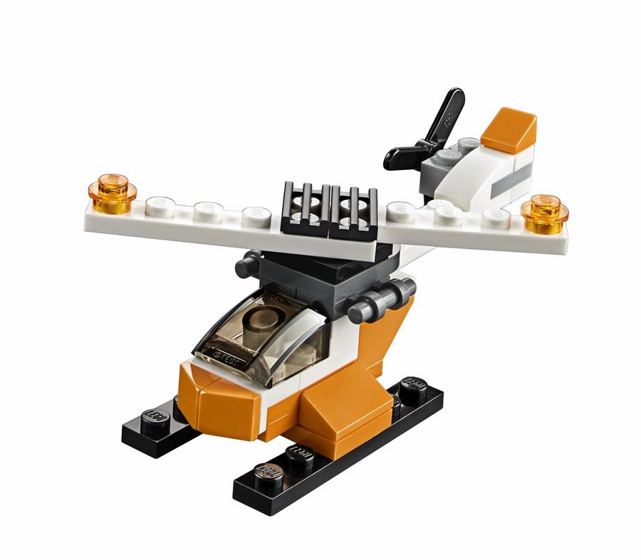 Ten ekstra zestaw dostarczy ci mnóstwa radości! Zbuduj wielką ciężarówkę w kolorze zielony, ciemnozielonym i szarym, a 2 pomarańczowymi światłami ostrzegawczymi i oponami o głębokim bieżniku. W zestawie znajdziesz też niesamowity pomarańczowo-biało-czarny helikopter z przyciemnianym kokpitem i obracającym się wirnikiem. Załaduj helikopter na pakę i ruszaj na lotnisko! Podstawowy model możesz później przerobić na mocny ciągnik albo solidną terenówkę.