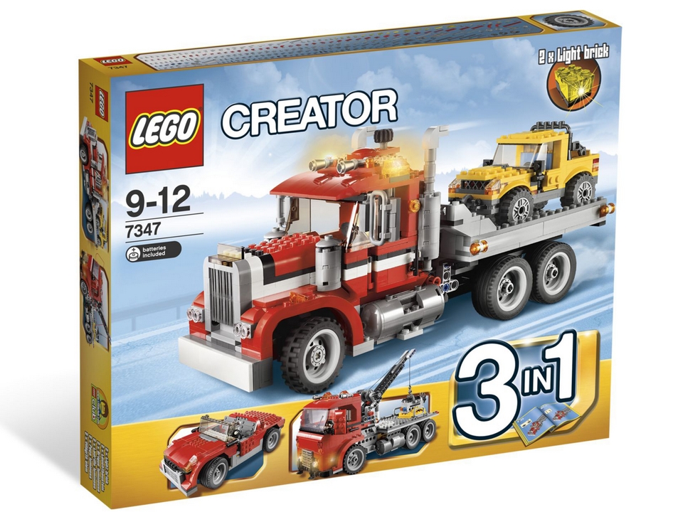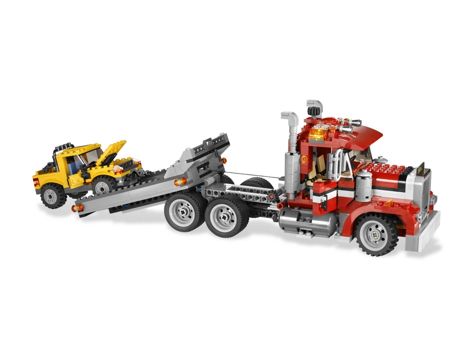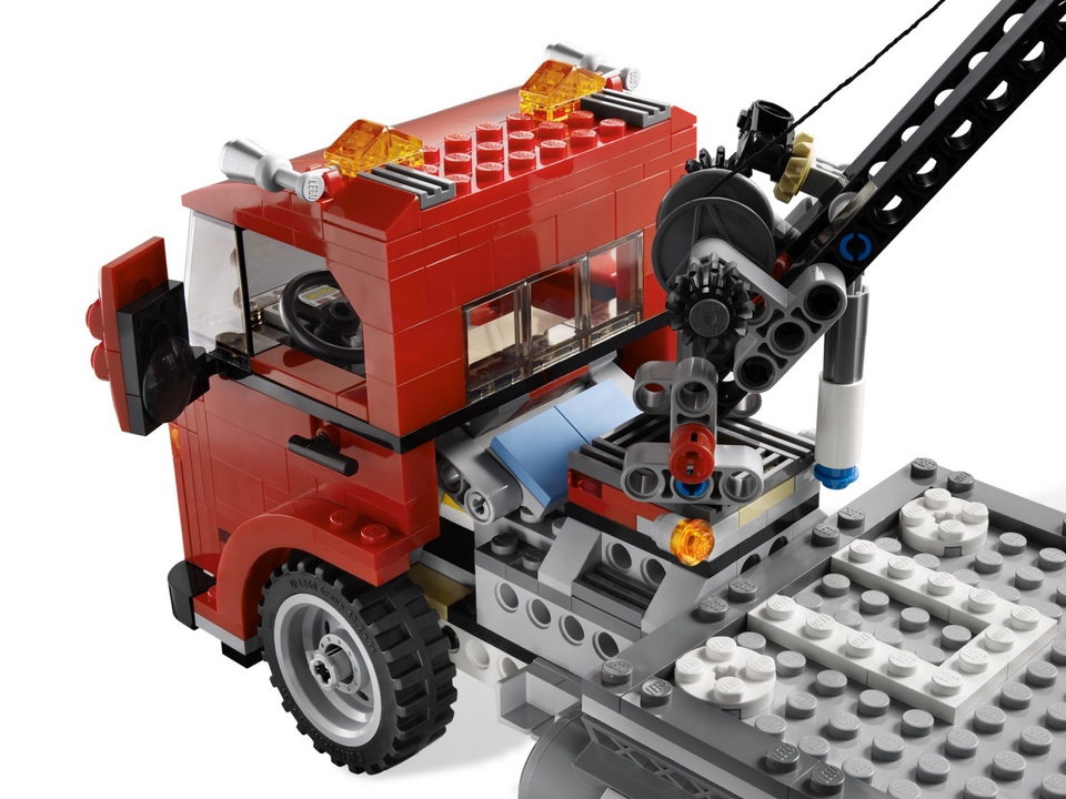 Na drodze zepsuł się samochód - transporter samochodów rusza na ratunek! Włącz podwójne światła ostrzegawcze, nakieruj odpowiednio koła i rozłóż platformę transportową, a następnie wciągnij na nią zepsute auto! Otwórz drzwi i maskę, aby przyjrzeć się szczegółom kabiny i silnika! Gdy tylko chcesz przy pomocy ilustrowanej instrukcji możesz przebudować transporter na odjazdowy kabriolet lub ciężarówkę z platformą.