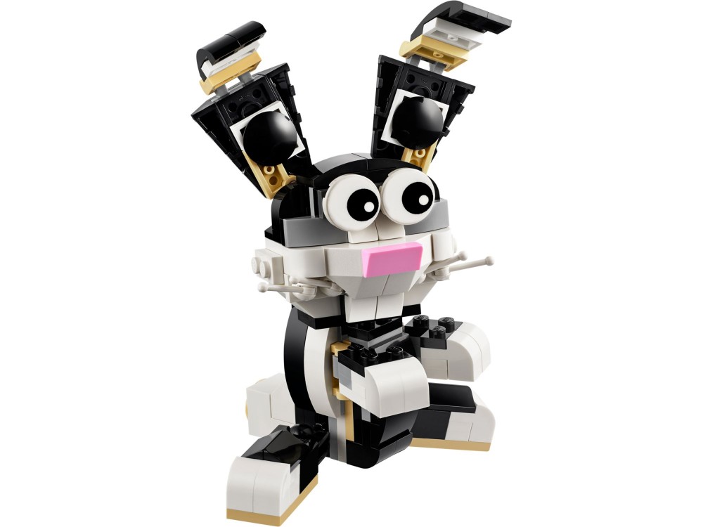 Model 3 w 1, z którego można zbudować kota i mysz, szczeniaczka, królika.