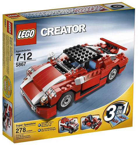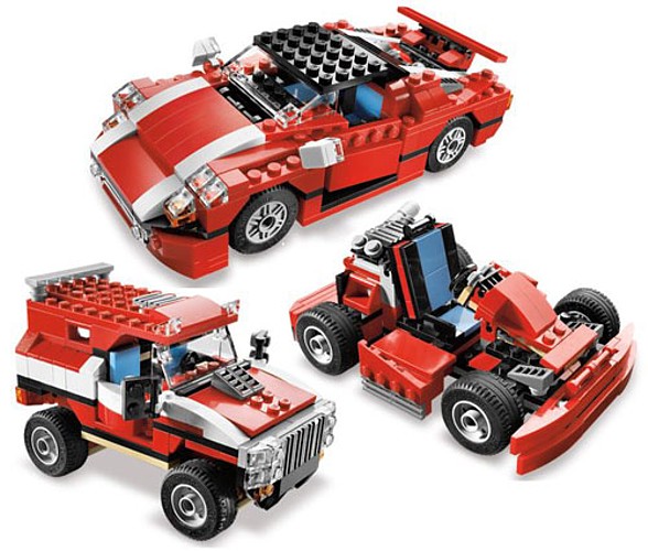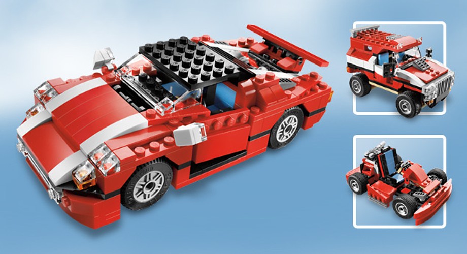 Zdobywca szos 3 w 1 z serii Creator umożliwi Ci zbudowanie niedoścignionego auta! Będziesz przemierzaj szosy w tym czerwonym sportowym samochodzie z otwieranymi drzwiami, przednim bagażnikiem i silnikiem z tyłu. Potem zmień go w wyścigowego gokarta lub w potężny, opancerzony samochód.