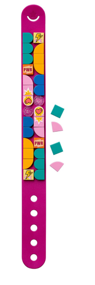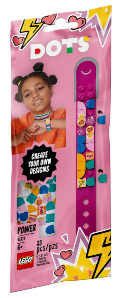- Pozwól dzieciom uwierzyć w siebie i zachęć je do kreatywnych prac ręcznych zestawem LEGO® DOTS Bransoletka mocy (41919), który zawiera regulowaną opaskę oraz 32 kolorowe płytki. Zabawa zaczyna się od dekorowania — wystarczy wysypać płytki!