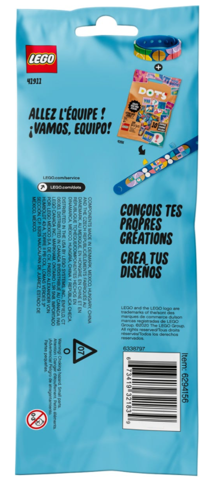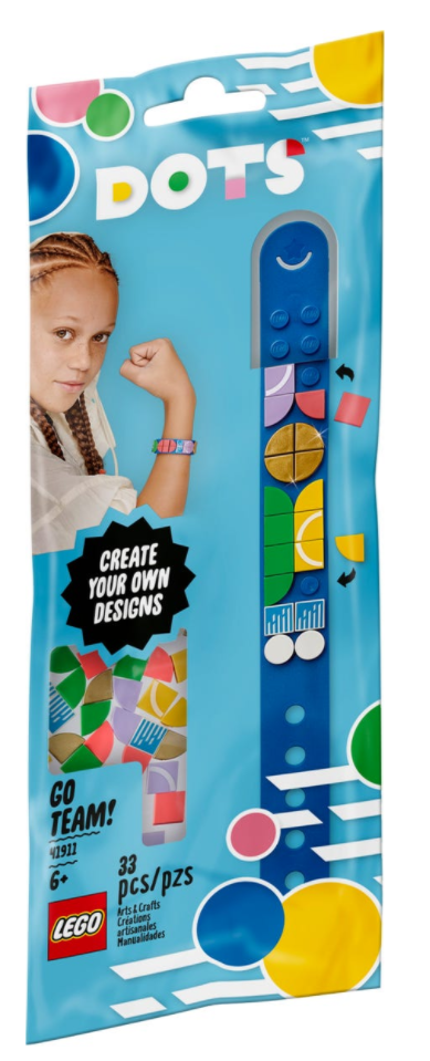 - Podaruj dziecku bransoletkę sportową LEGO® DOTS, by wspierać jego zamiłowanie do rękodzieła! Zestaw 41911 zawiera regulowaną opaskę oraz 32 kolorowe płytki. Zabawa zaczyna się od dekorowania — wystarczy wysypać płytki z woreczka!