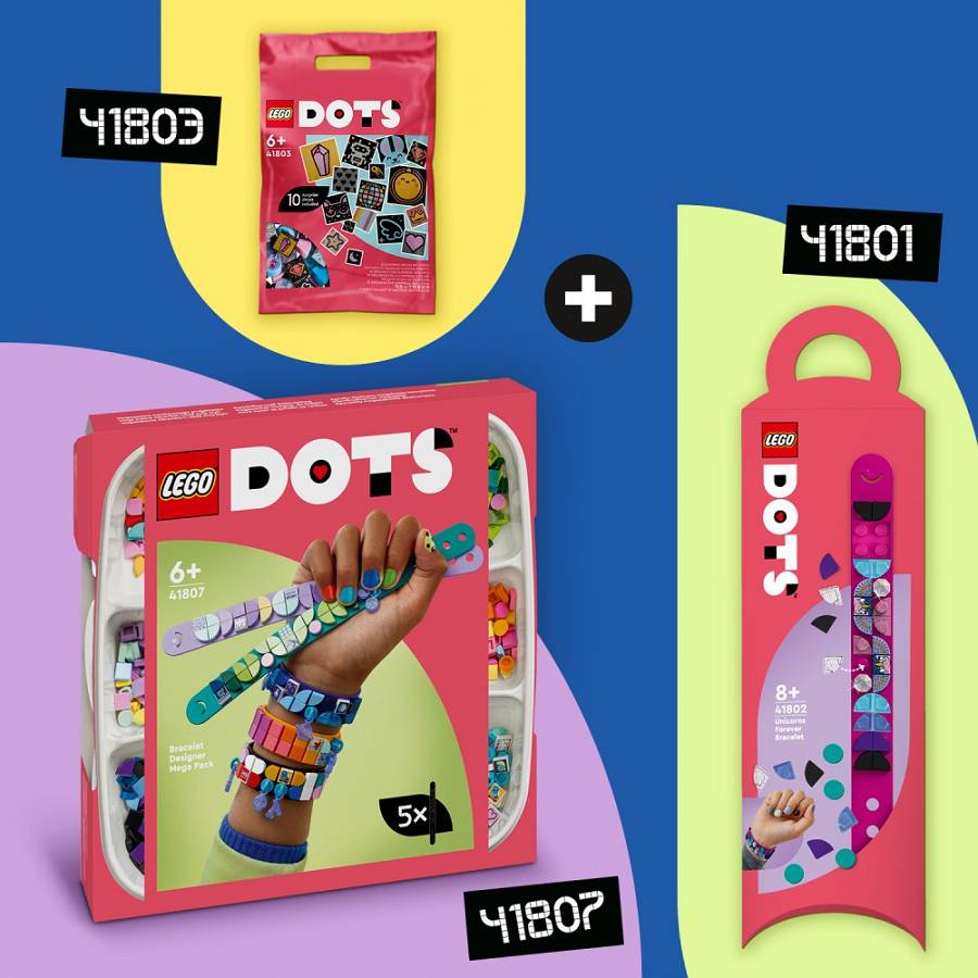 Zestawy DOTS wprowadzają dzieci w świat zabawy z LEGO podczas eksperymentowania z zestawami. Z tą bransoletką wszystko jest możliwe, ponieważ cała magia tkwi w dziecięcej wyobraźni. Zestawy DOTS to kreatywne narzędzia, które stanowią wspaniałą niespodziankę lub prezent na urodziny dla dzieci, które chcą wyrazić siebie w zabawny, nowatorski sposób.