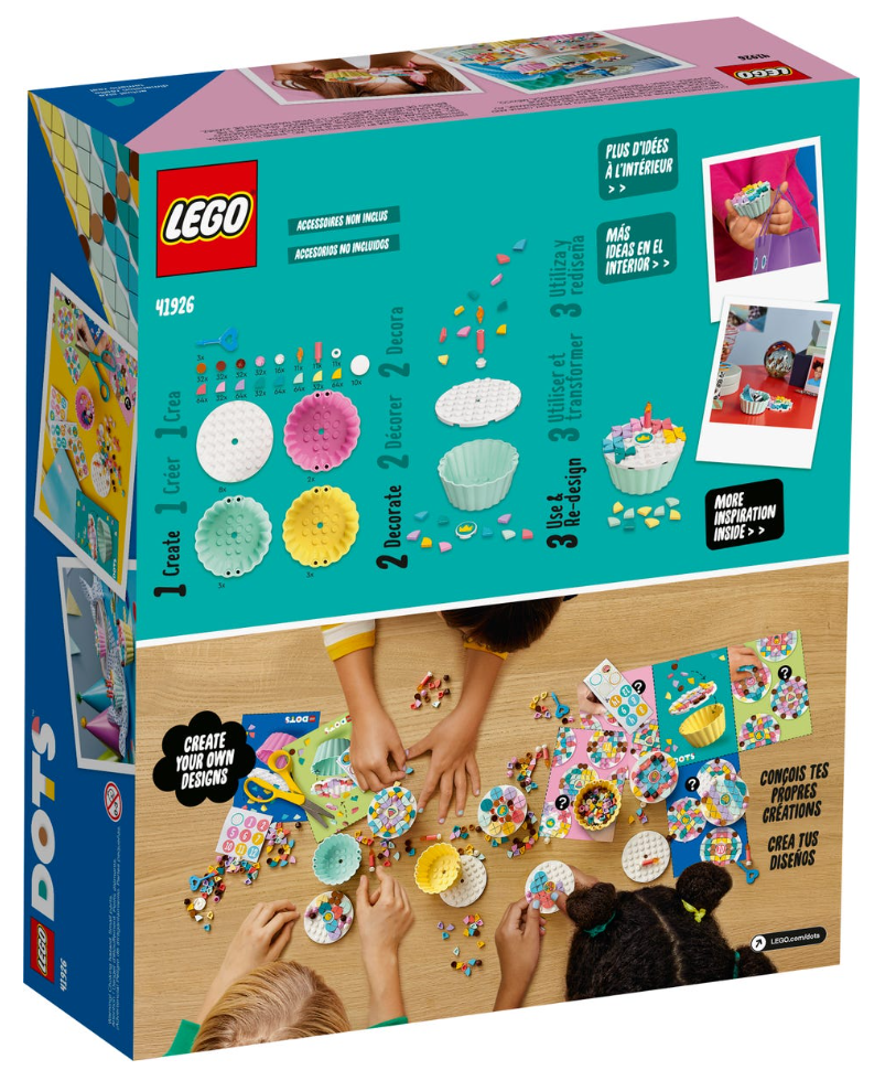 - Uroczy zestaw LEGO® DOTS Kreatywny zestaw z tortem (41926) będzie miłym zaskoczeniem dla każdego malucha. Zawiera osiem babeczek, które można przerabiać po swojemu, arkusz z naklejkami, świeczki do zbudowania i całą masę kolorowych płytek.