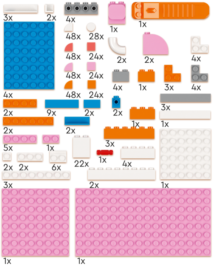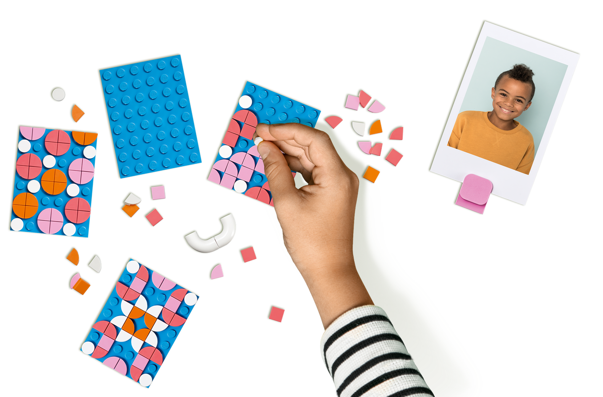 - Z kolorowych płytek łatwo stworzyć atrakcyjny wzór. Można ozdobić nimi modele z innych zestawów z dekoracjami lub zamieniać z płytkami z innych zestawów DOTS, takich jak Dodatki DOTS — seria 2 (41916).