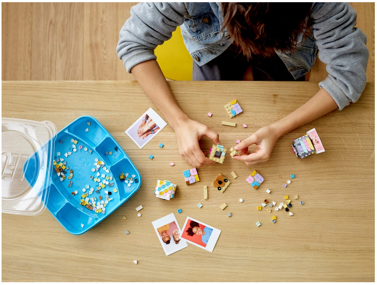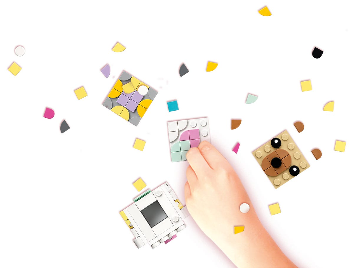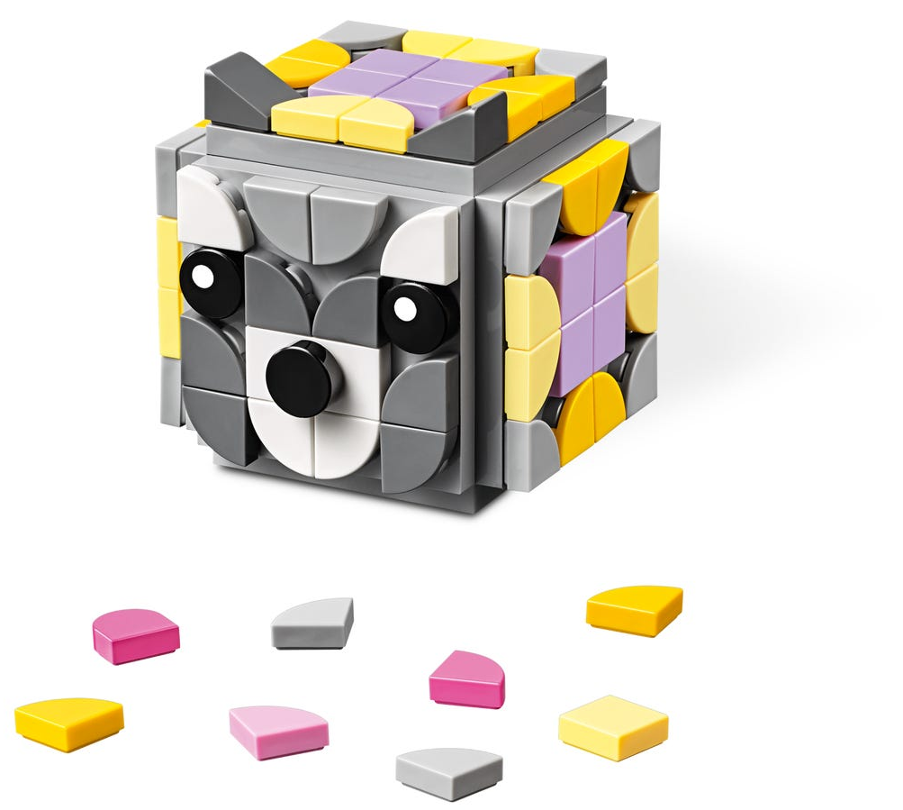 - Zachwyć młodego miłośnika prac ręcznych uroczym zestawem trzech kostek LEGO® DOTS (41904) z pyszczkami zwierząt, pokrywkami i podstawkami na zdjęcia. Zabawa zaczyna się od złożenia stojaków na zdjęcia — wystarczy otworzyć pudełko!