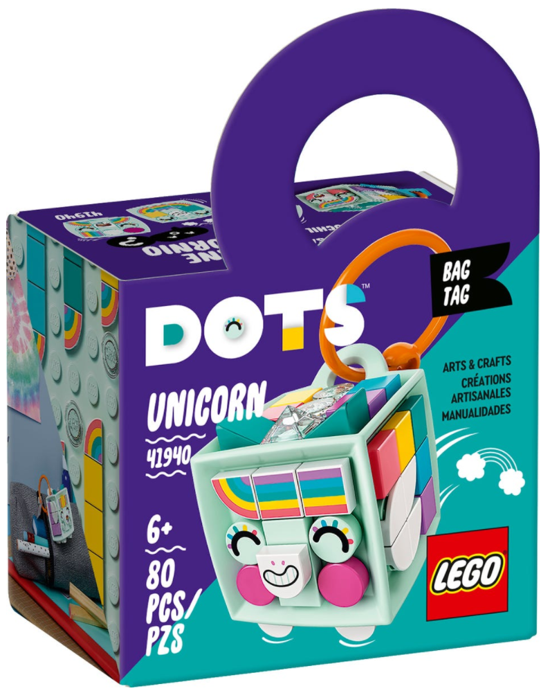 - Każdemu miłośnikowi prac ręcznych spodoba się zaczarowany zestaw LEGO® DOTS Zawieszka z jednorożcem (41940), który zawiera wytrzymałą kostkę z zaczepem, separator płytek oraz sporo kolorowych płytek.