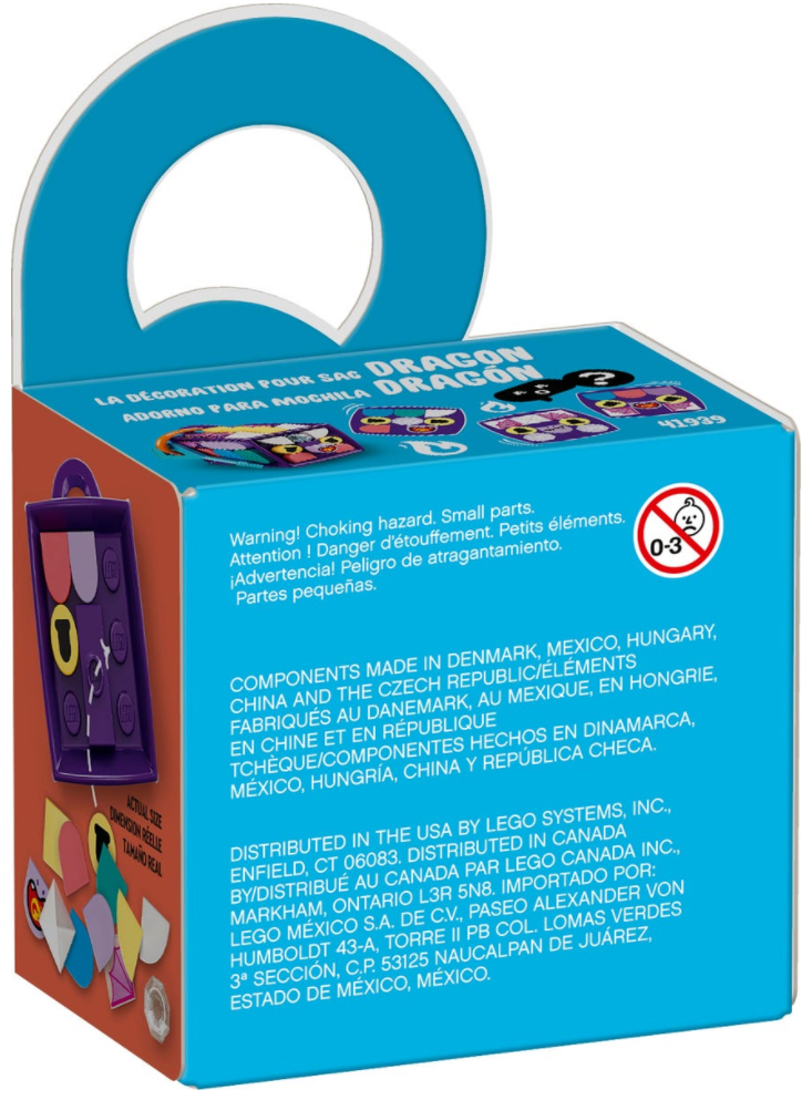 - Każdemu dziecku spodoba się fantastyczny zestaw LEGO® DOTS Zawieszka ze smokiem (41939), który zawiera wytrzymałą kostkę z zaczepem, separator płytek oraz sporo kolorowych płytek.