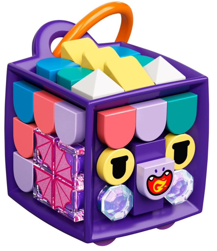 Ten praktyczny zestaw do rękodzieła zawiera kostkę, którą można ozdabiać płytkami na różne sposoby, kółko do zawieszenia jej oraz separator płytek. W komplecie są fioletowe, niebieskie,zielononiebieskie i różowe płytki do zaprojektowania niepowtarzalnego smoka, a woreczek Dodatki DOTS — seria 4 (41931, sprzedawany osobno) z dodatkowymi płytkami pozwoli projektować jeszcze więcej kreatywnych buziek i wzorów.