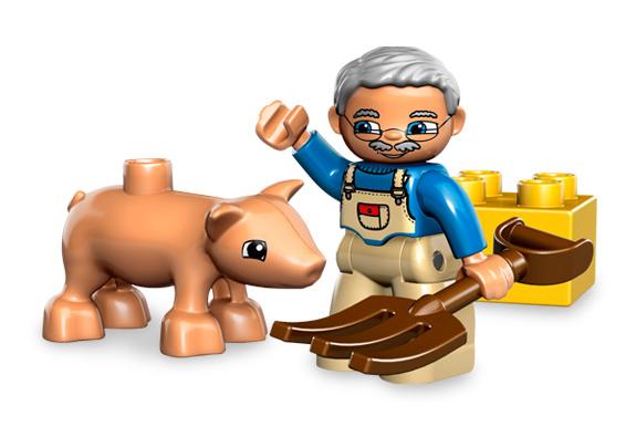 - Klocki Duplo (m.in. widły, łopata, płotek)