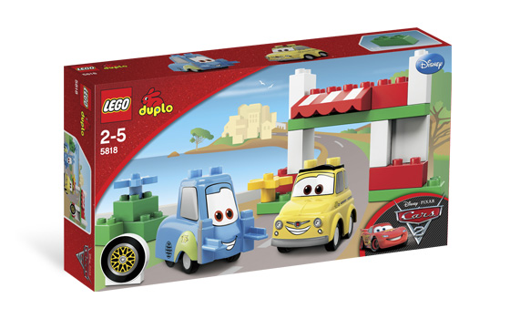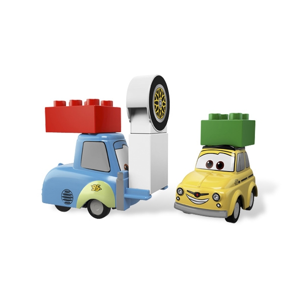 Zestaw z serii Lego Deplo Cars 2. Luigi i Guido wrócili do Włoch, aby naładować u Wujka Topolino akumulatory przed kolejnym wielkim wyścigiem. Nie potrafią jednak siedzieć bezczynnie i wkrótce zaczną trenować swoje umiejętności serwisowe, zaczynając od wymiany koła zapasowego.