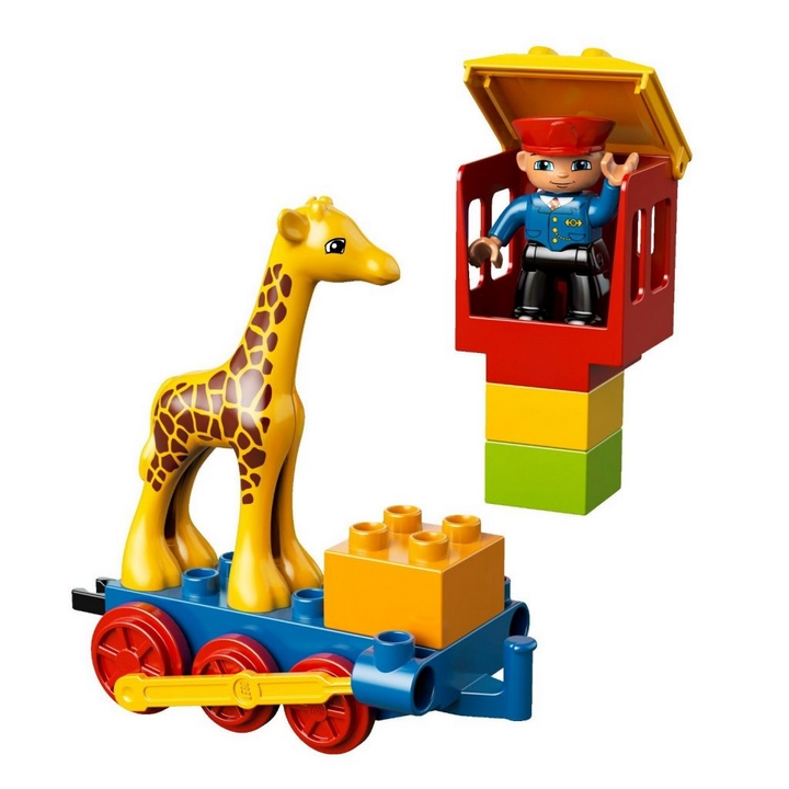 Z dalekiej krainy do ZOO w mieście Lego Duplo jedzie żyrafa! Ponieważ zwierzę było za wysokie, aby zmieścić się do samochodu - jedzie pociągiem! Pomóż maszyniście dopilnować żyrafy i zadbaj o bezpieczną podróż! Rozstaw osi pociągu pasuje do zestawów 5608 i 5609.