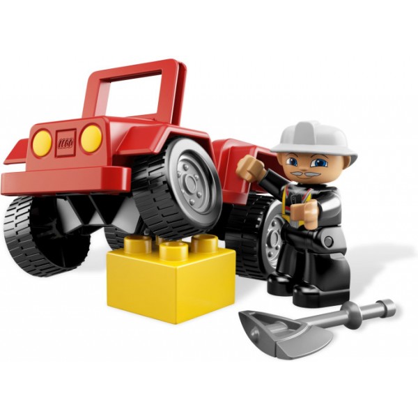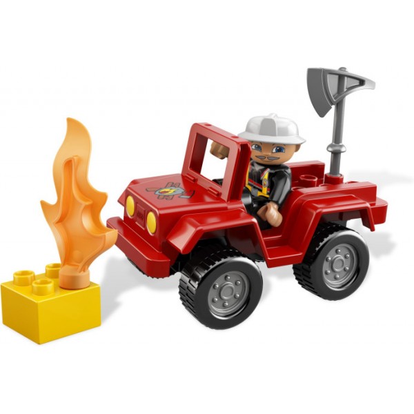 Dowódca straży pożarnej miasta Duplo rusza na akcję! Dzięki terenowemu jeepowi dowódca straży zawsze dokładnie patroluje okolicę i może szybko dostać się na miejsce akcji by wspomóc swoich dzielnych podwładnych!