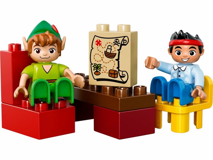 Wybierz się z Jake'em i Piotrusiem Panem w fascynującą podróż do Nibylandii. Pomóż im wspinać się po skałach i pokonać most nad wodospadem. Wsiądź na łódź i podążaj za mapą, aby znaleźć skarb! Uważaj jednak na Krokodyla Tik-Toka, który zawsze czai się gdzieś w pobliżu. Wkrocz do fascynującego świata nowych zestawów LEGO® DUPLO® z serii Jake i piraci z Nibylandii™.