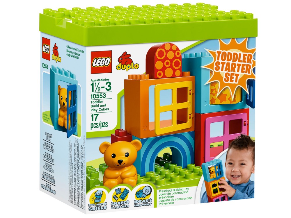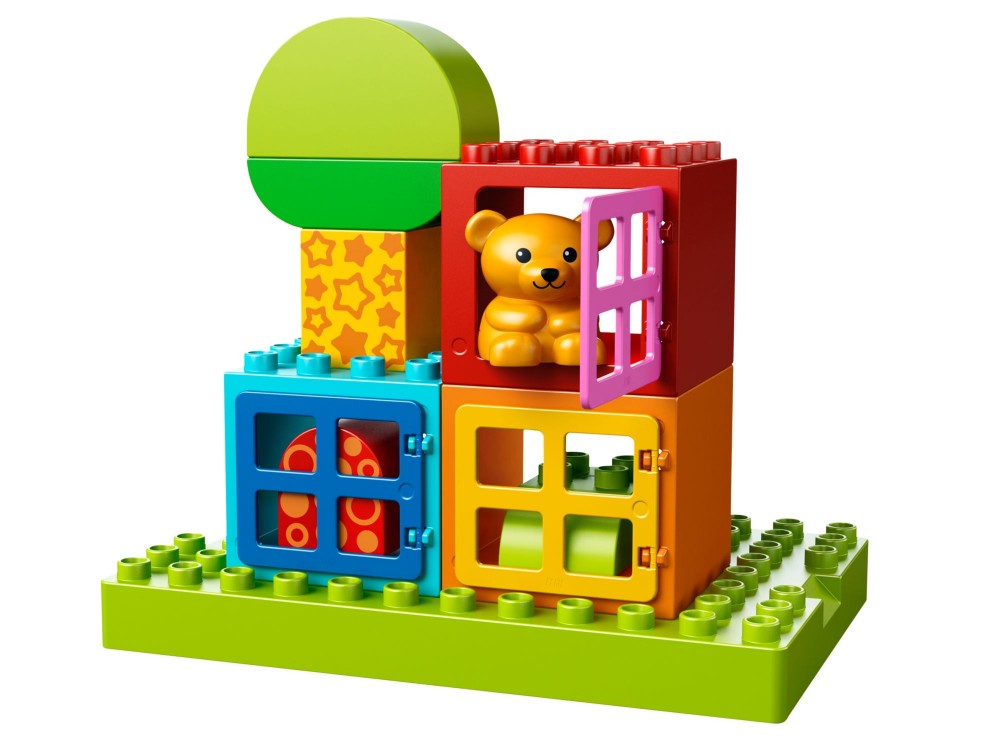 Dzięki nowemu zestawowi kostek do budowania i zabawy dla malucha nawet małe dziecko może eksperymentować, bawić się i tworzyć! Duże klocki Duplo, stanowiące idealne wprowadzenie do kreatywnego budowania dla małych dzieci. Zestaw zawiera 17 wygodnych klocków i elementów w jasnych kolorach, w tym 3 klocki przedstawiające okna, misia i wybór klocków z dekoracjami.