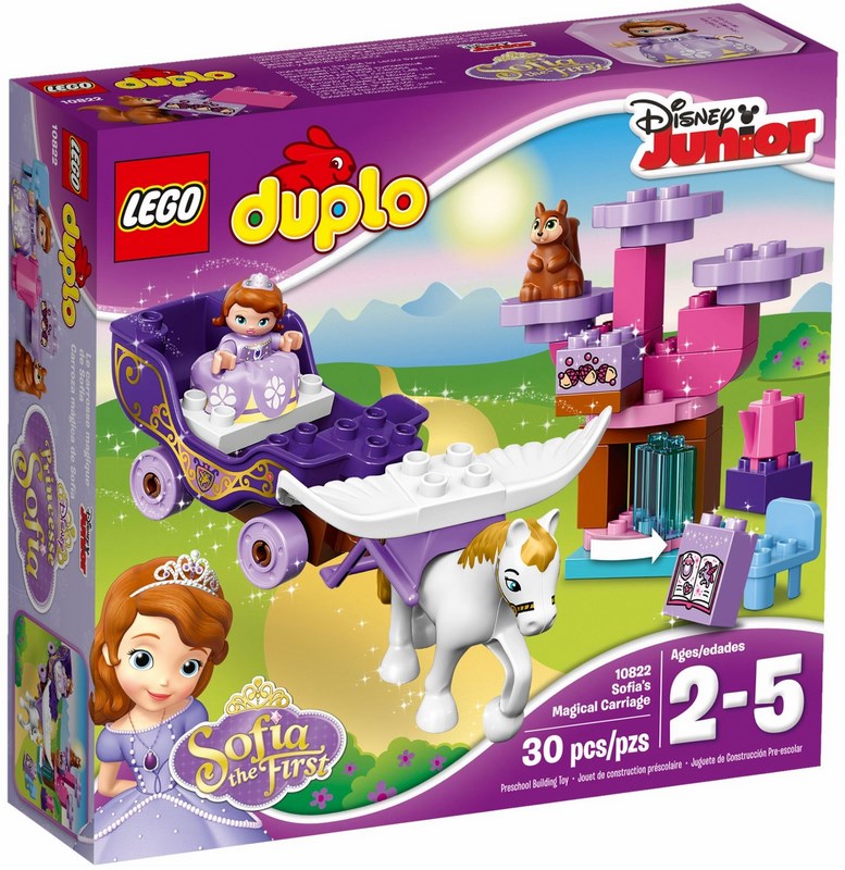 Fanki i fani serialu „Jej Wysokość Zosia”, emitowanego na kanale Disney Junior, będą mogli odgrywać przygody Zosi z udziałem magicznej karety ciągniętej przez latającego konia Minimusa Wspaniałego. Weź udział w pikniku z wiewiórką Whatnaught obok obrotowego drzewa, a potem pomóż Zosi znaleźć magiczną książkę, ukrytą w tajnej bibliotece. W zestawie figurka LEGO® DUPLO®: Zosia, a także figurki Minimusa Wspaniałego i wiewiórki Whatnaught.