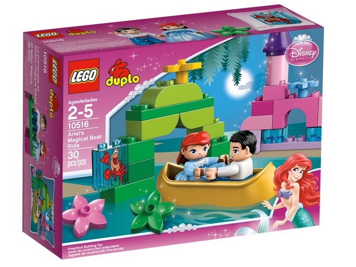 Magiczna Łódka Arielki 10516 zabierze Cię na cudowną wycieczkę razem z Arielką i czarującym księciem Erikiem. Spędź wraz z nimi słoneczny dzień na złotej łódce w pobliżu różowego zamku. Odtwórz słynne sceny z filmu Disneya! Pastelowe klocki i kwiaty Lego Duplo dają dużo radości z budowania!