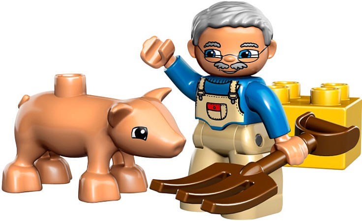 Mała świnka jest głodna, ale dziadek ją nakarmi.