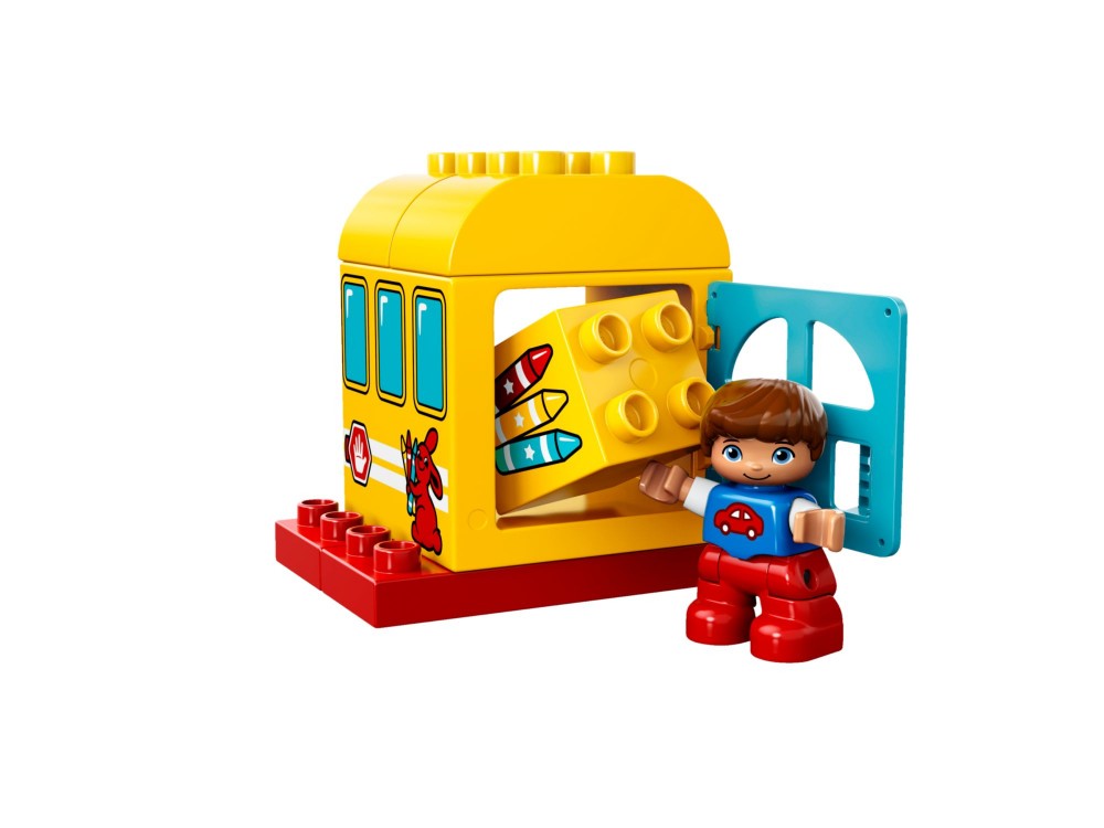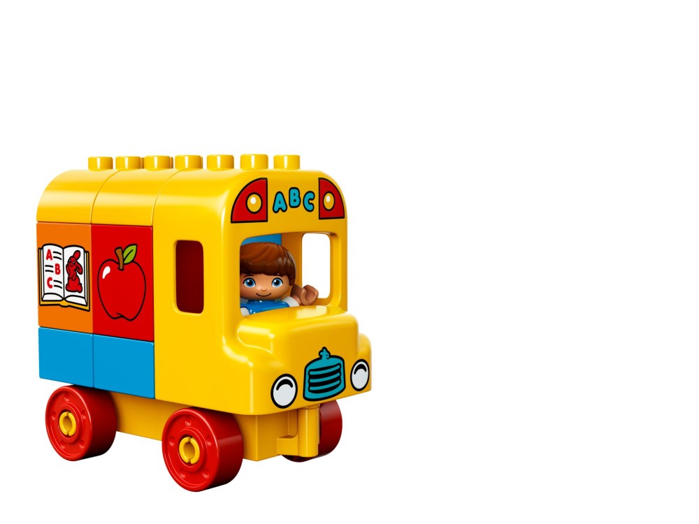 Baw się i ucz dzięki zestawowi Mój pierwszy autobus LEGO® DUPLO®! Połącz ze sobą duże elementy, tworząc autobus. Następnie za pomocą dekorowanych klocków zbuduj kolorową tablicę. Ten łatwy w budowie zestaw stanowi idealny wstęp do rozwoju umiejętności konstrukcyjnych dziecka. Użyj tablicy do odgrywania scenek i wprowadzenia dziecka w świat zajęć szkolnych. Ćwiczcie abecadło dzięki specjalnym dekorowanym klockom.