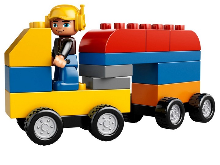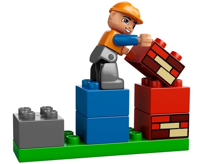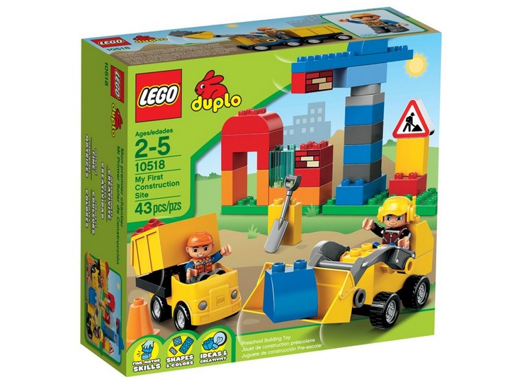 Mój Pierwszy Plac Budowy 10518 umożliwia wznoszenie całkiem sporych konstrukcji. Ustaw znaki i pachołki drogowe, aby przygotować teren do robót. Trwa pracowity dzień na miejskim placu budowy. Robotnicy poruszają się po nim w ciężarówce-wywrotce i ładowarce. Klocki można przenosić za pomocą wysokiego żurawia. Klocki Duplo są bezpieczne i wygodne dla małych rączek.