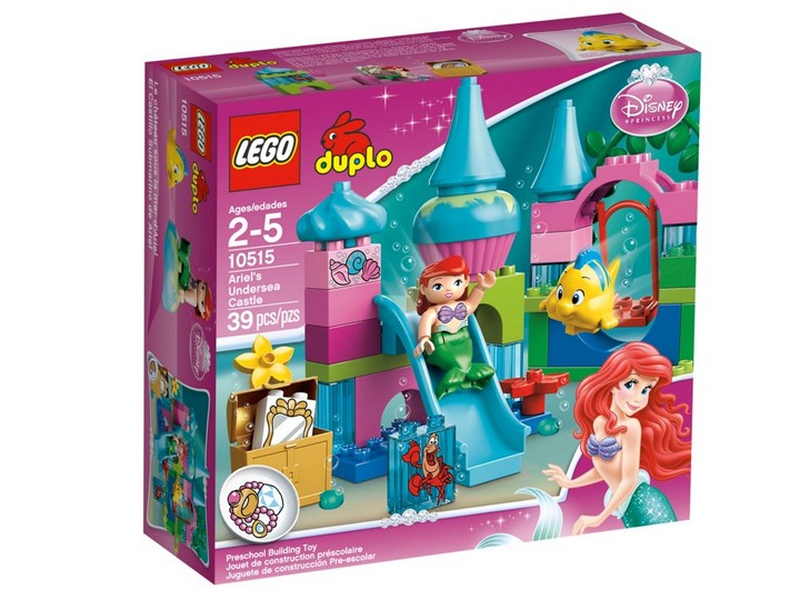 Podwodny Zamek Arielki 10515 pozwoli poznać smak podmorskiej zabawy wraz z morską księżniczką Disneya. Wspólnie z Arielką huśtaj się na huśtawce z wodorostów, podczas gdy Florek zjeżdża po wodnej fontannie. Nie zapomnij odszukać skrzyni ze skarbami!