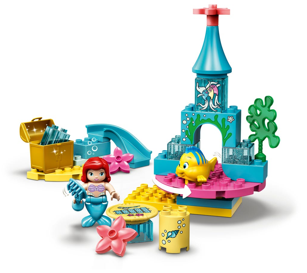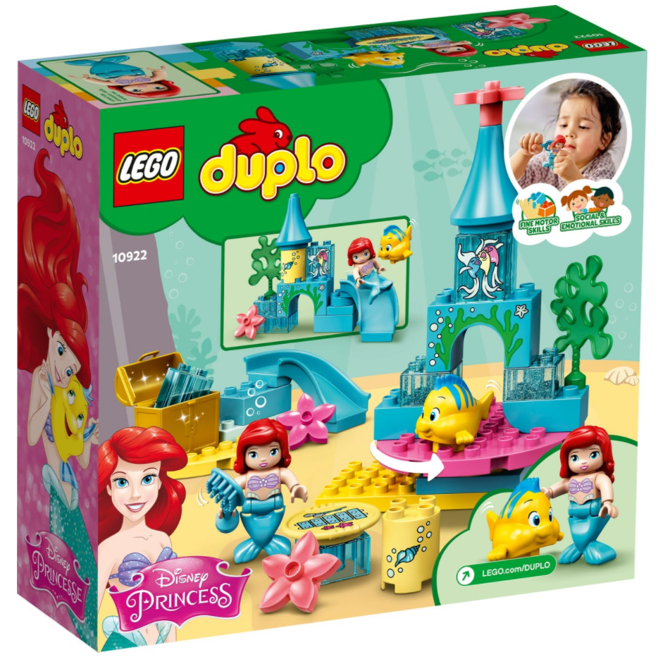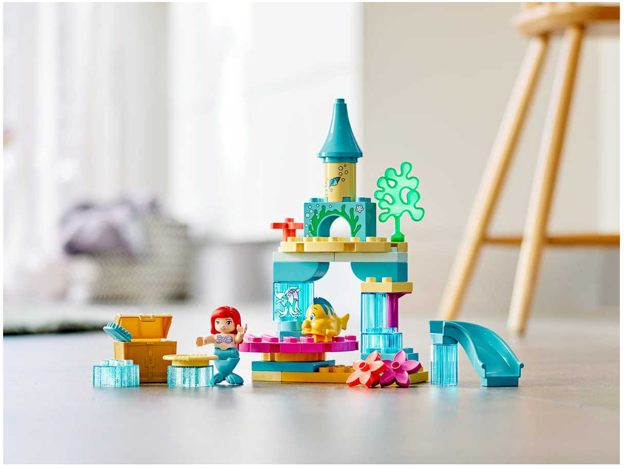 Zestaw LEGO® DUPLO® │ Disney Podwodny zamek Arielki (10922) z pełnym funkcji placem zabaw małej syrenki pobudza wyobraźnię maluchów i pozwala im rozwijać zdolności manualne oraz emocjonalne.