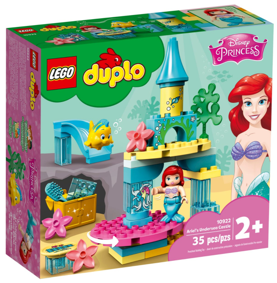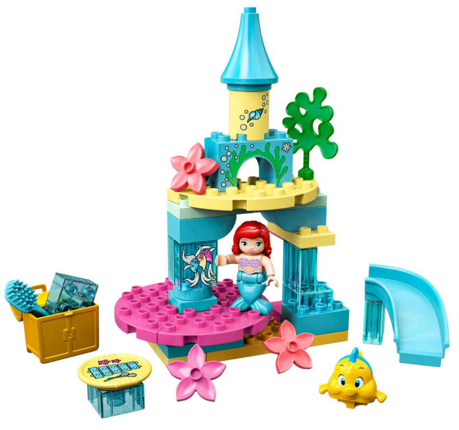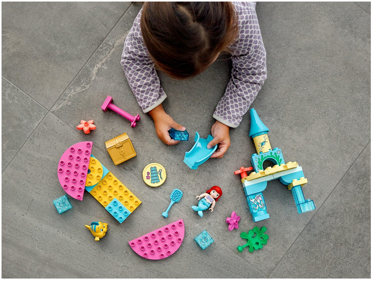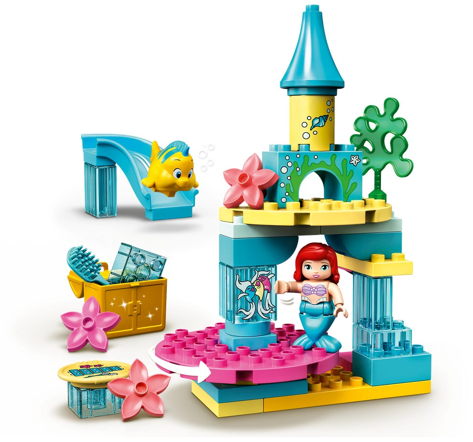 Zestaw LEGO® DUPLO® │ Disney Podwodny zamek Arielki (10922) z pełnym funkcji placem zabaw małej syrenki pobudza wyobraźnię maluchów i pozwala im rozwijać zdolności manualne oraz emocjonalne.