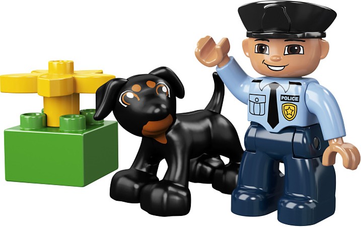 Jest ładny dzień i policjant spaceruje po mieście ze swoim psem policyjnym. Jak zwykle rozgląda się za złodziejami.