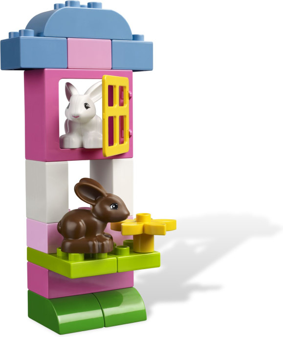 LEGO Duplo różowy zestaw klocków został opracowany specjalnie dla dziewczynek – to niekończące się pomysły na zabawę! Ten uroczy zestaw zawiera króliki, marchewki, kwiaty oraz podstawowe klocki LEGO Duplo w różnych kolorach. Dodatkowo zestaw zawiera broszurę z inspirującymi pomysłami, a całość znajduje się w solidnym pudełku do przechowywania klocków LEGO.