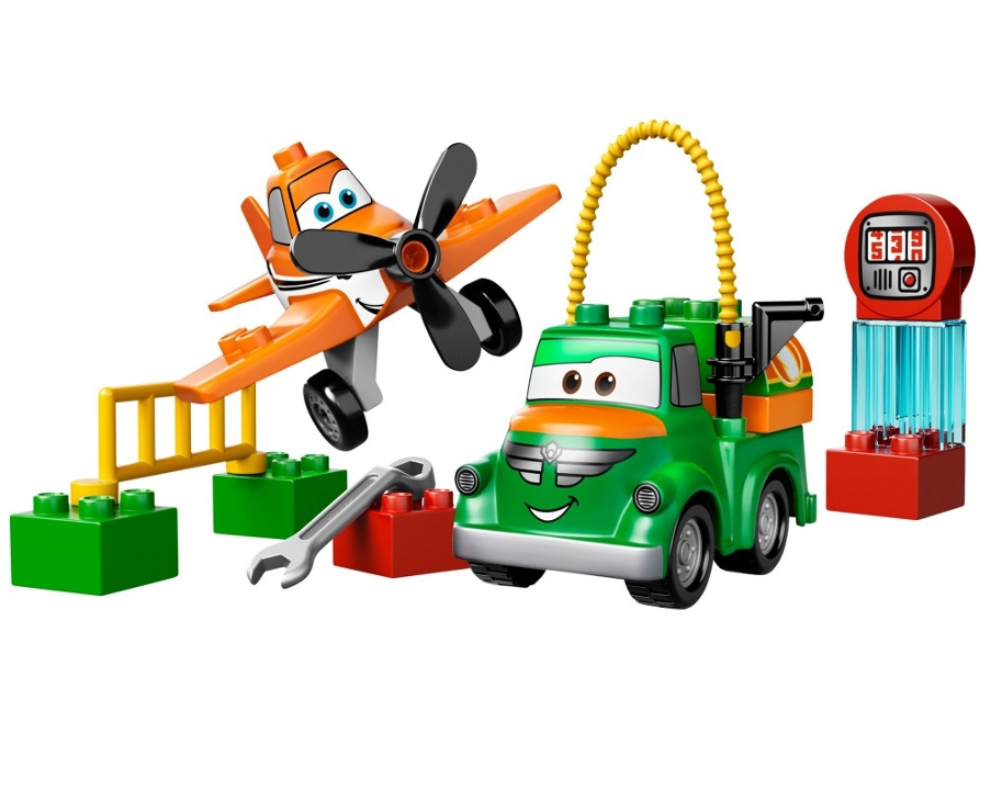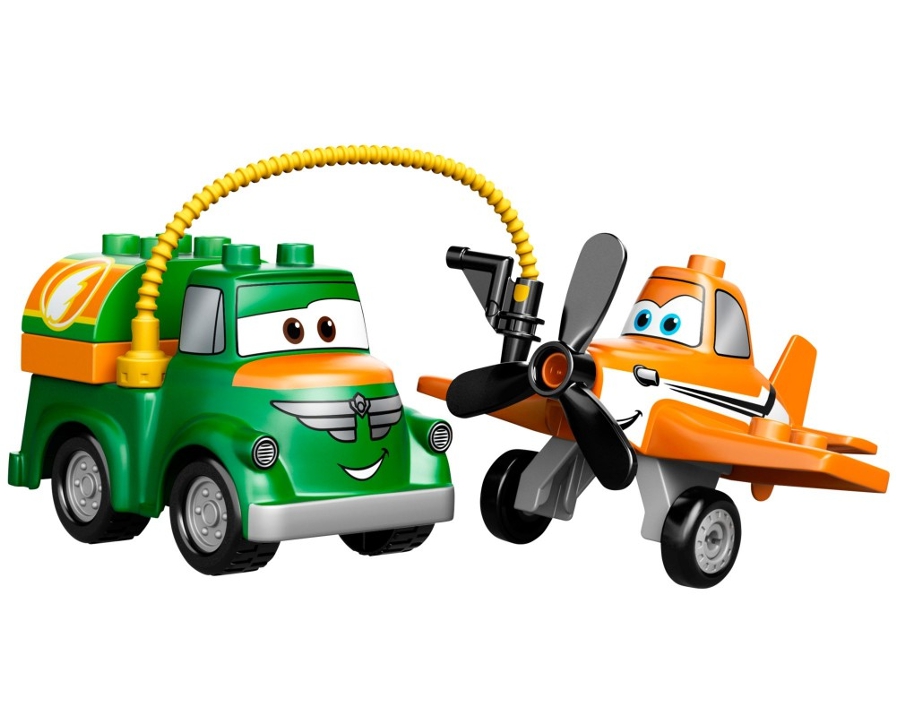 Pomóż Dusty’emu trenować z pomocą Beki przed wielkim wyścigiem Samolotów™ Disneya! Gdy zabraknie mu paliwa, szybko leć do stacji paliw. Zatankuj z węża Beki i ruszaj z powrotem w przestworza. Zestaw zawiera postacie LEGO® DUPLO® — Dusty’ego i Bekę.