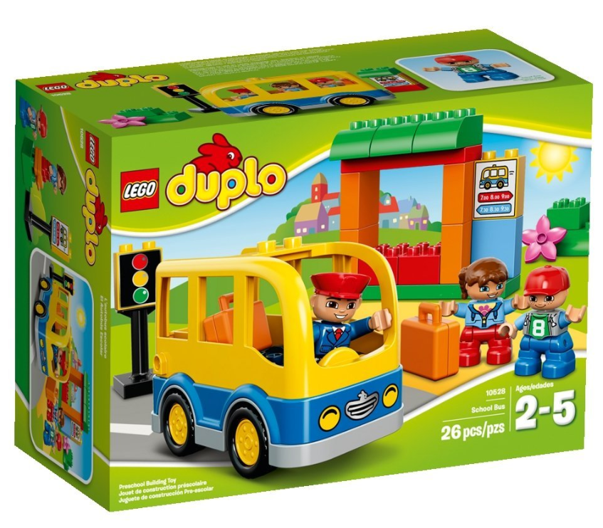 Wszyscy wsiadać do szkolnego autobusu! Zbuduj przystanek, gdzie 2 dzieci może sprawdzić rozkład i poczekać na przyjazd autobusu. Pomóż kierowcy autobusu zatrzymać się na światłach i podjechać na przystanek, aby zabrać dzieci. Następnie pojedź do szkoły, aby punktualnie dotarły na lekcje. Małe dzieci pokochają budowanie i przebudowywanie tego wspaniałego modelu z wielkimi klockami LEGO® DUPLO® w jasnych kolorach.