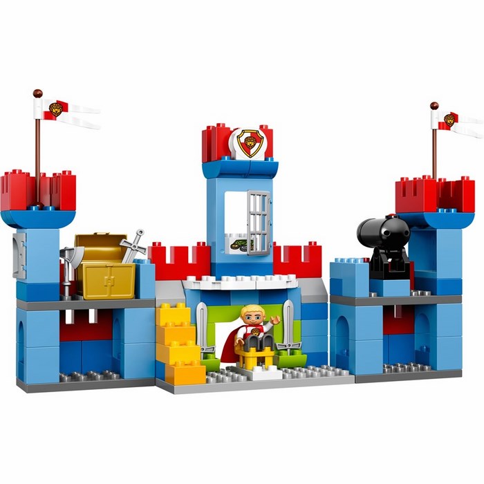 Zaatakuj Zamek Królewski, niech zacznie się prawdziwa zabawa! Wskocz na zwodzony most i pokonaj lojalnych rycerzy, którzy bronią króla i jego skarbu. W tym zestawie dziecko znajdzie wszystko, co potrzebne, aby co chwilę wyruszać na nowe przygody. Pomóż dzieciom uczyć się i rozwijać podczas budowania wielu różnych wersji zamku przy pomocy dodatkowych klocków i akcesoriów, które stanowią też inspirację do tworzenia ciekawych historii. Opowiadaj im o historii podczas odgrywania scenek z udziałem króla i rycerzy. Możliwości zabawy są nieograniczone! DUPLO® i inscenizuj niezliczone przygody z udziałem króla i 3 rycerzy, wykorzystując przy tym też armatę, konia, tron, kocioł i różne bronie.