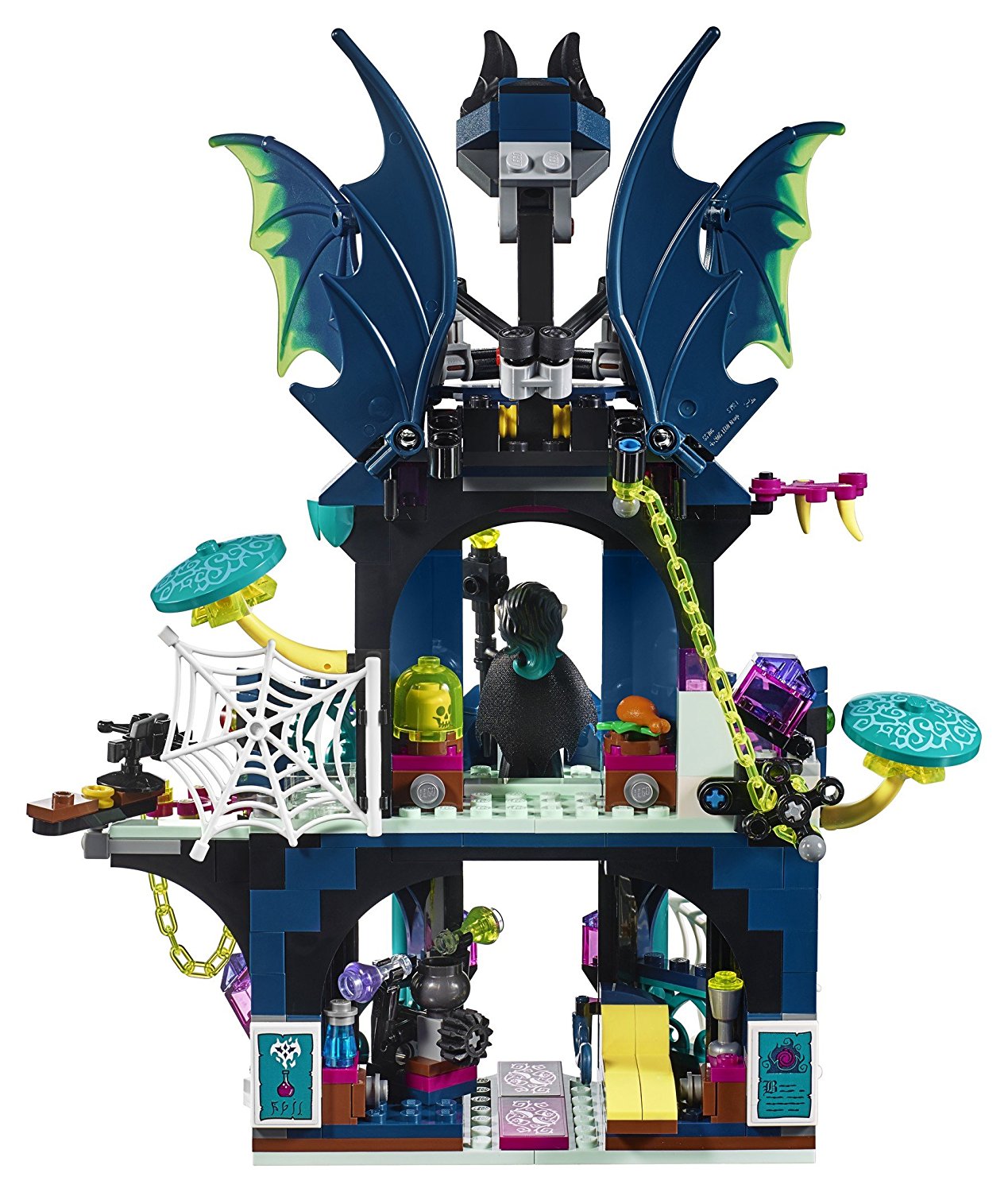 - Piętrowa Wieża Cieni ma duże skrzydła nietoperza i głowę, którą można podnieść, by dostać się na piętro. W wieży znajdują się ruchome butelki z eliksirami, kociołek, otwierana pułapka w kształcie pajęczyny, miotacz dysków, funkcja otwierania łańcucha, miejsce z przodu kapliczki na cztery „diamenty” żywiołów, a także wisząca wnęka dla nietoperzy.