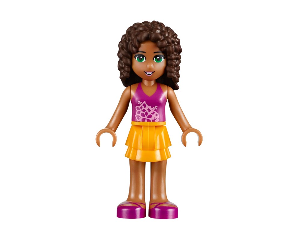 Wybierz się z Andreą do baru z sokami w Heartlake na pyszne napoje! Wybierz stolik i poczytaj menu przepysznych soków, koktajli i kanapek, które możesz zmówić od stojącej za ladą Nayi. Pomóż Nayi zrobić w blenderze lub wyciskarce do soków napój z pysznych owoców ze skrzynki i zanieść go Andrei na słoneczny taras. Z torebką pod ręką jest gotowa na cudowny dzień w Heartlake. Pobaw się zabawkowymi pieniędzmi.