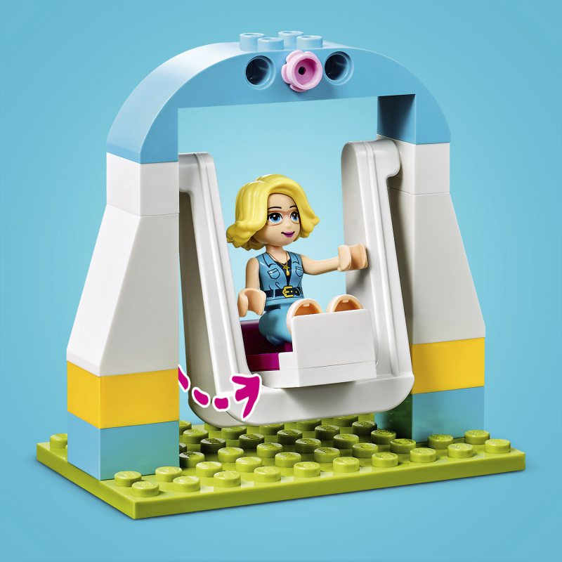 Górna część domu jest zdejmowana, dzięki czemu małe rączki będą mogły wygodniej sięgnąć do wszystkich niezwykłych detali na parterze. To oznacza również, że dwójka przyjaciół może bawić się tym modelem jednocześnie, bo każdy będzie mieć dla siebie część podłogi! W modelu domu dzieci znajdą wiele uroczych funkcji, które dodatkowo ożywią kreatywną zabawę. W zestawie jest także miniaturowa huśtawka, by zabawa mogła się przenieść poza dom.
