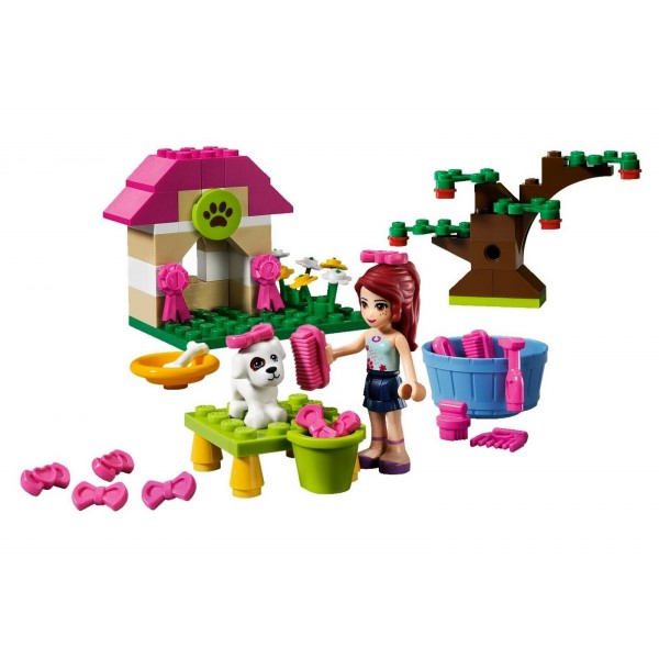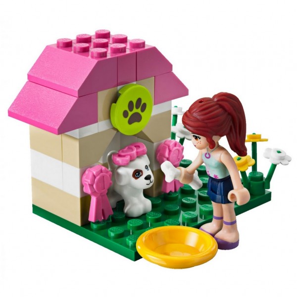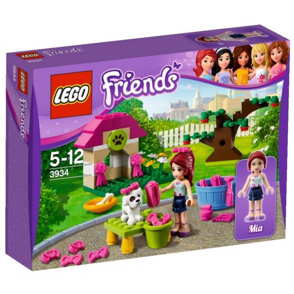 Lego Friends Domek dla pieska 3934 - Pomóż pieskowi Mii przygotować się do pokazu. Co roku w mieście Heartlake odbywa się słynna wystawa psów, połączona z konkursem na najśliczniejszego czworonoga. W tym roku piesek Mii też weźmie w nim udział. Pomóż obojgu przygotować się do konkursu, wyszoruj i wyszczotkuj pieska, wybierz dla niego dodatki i ruszaj w drogę na wystawę!