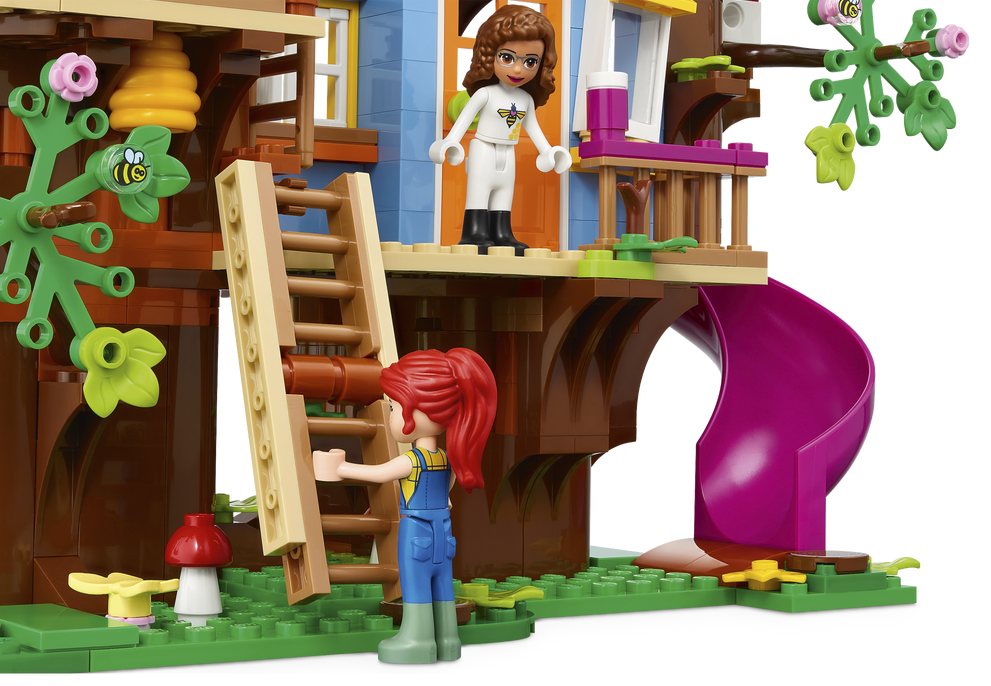 Ten zestaw zawiera wiele misternych szczegółów, które umożliwiają nieograniczoną twórczą zabawę. Dzieci mogą wybrać miód z ula, zbudować domki dla ptaków przy użyciu imadła stolarskiego, obracać turbinę wiatrową, aby podnieść windę, lub bawić się na dużej zjeżdżalni i huśtawce. Są tu również ukryte detale do odkrycia. Z okazji dziesiątej rocznicy serii LEGO Friends zestaw zawiera też kod QR — zeskanuj go, aby odkryć klasyczne skarby ukryte w mieście Heartlake.
