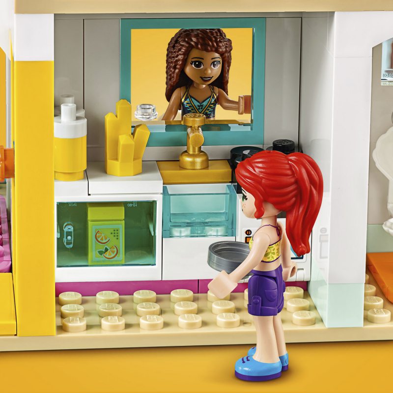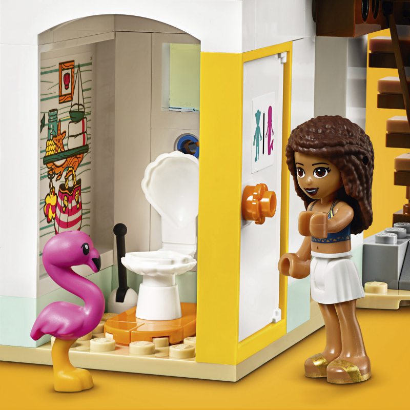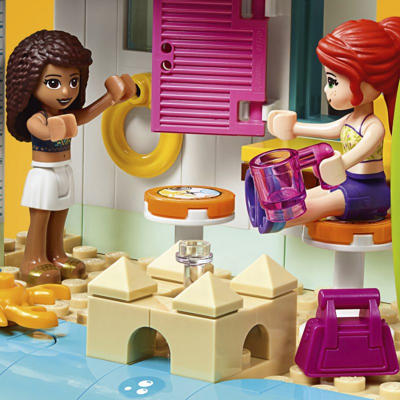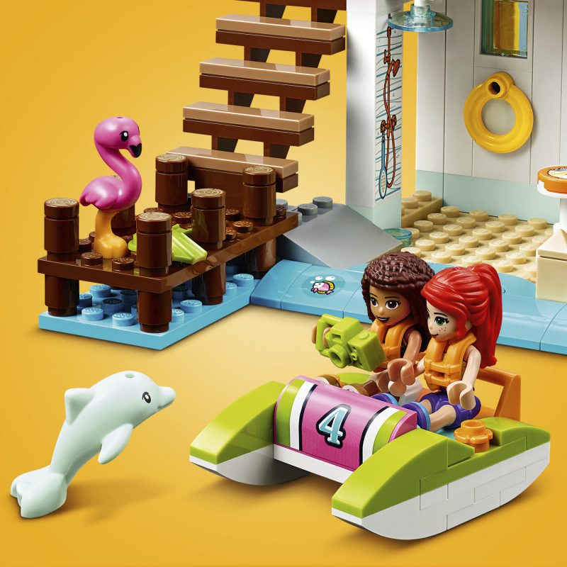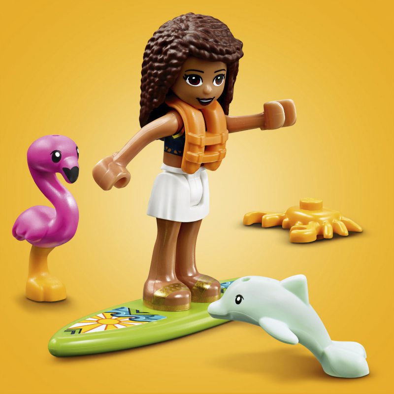 - Dzieciom na pewno spodoba się odtwarzanie scenek z plażowej zabawy z minilaleczkami LEGO® Friends Mią i Andreą. Aby dzieciom nie brakło pomysłów na letnie przygody, w zestawie jest również figurka flaminga (nowość na czerwiec 2020 r.) oraz figurka delfina.