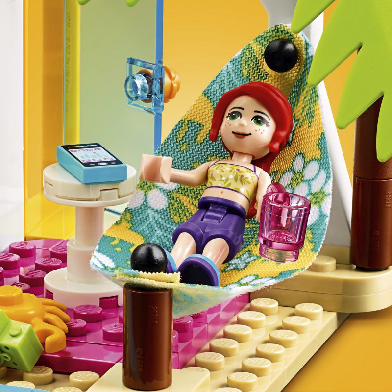 - Model Domek na plaży (41428) to gwarancja wielu godzin doskonałej zabawy. Jest tam cała masa fantastycznych detali, takich jak stanowisko DJ-a na dachu, barek z przekąskami czy hamak, więc dzieci dadzą się porwać kreatywnej zabawie bez końca
