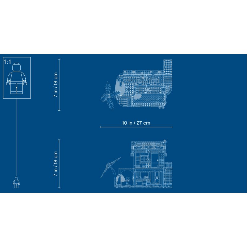 - Domek na plaży ma ok. 17 cm wysokości i 21 cm szerokości, więc będzie się świetnie prezentować na półce. Tę letnią zabawkę można poza tym połączyć z innymi zestawami LEGO®, by dawka kreatywnej frajdy była jeszcze większa.