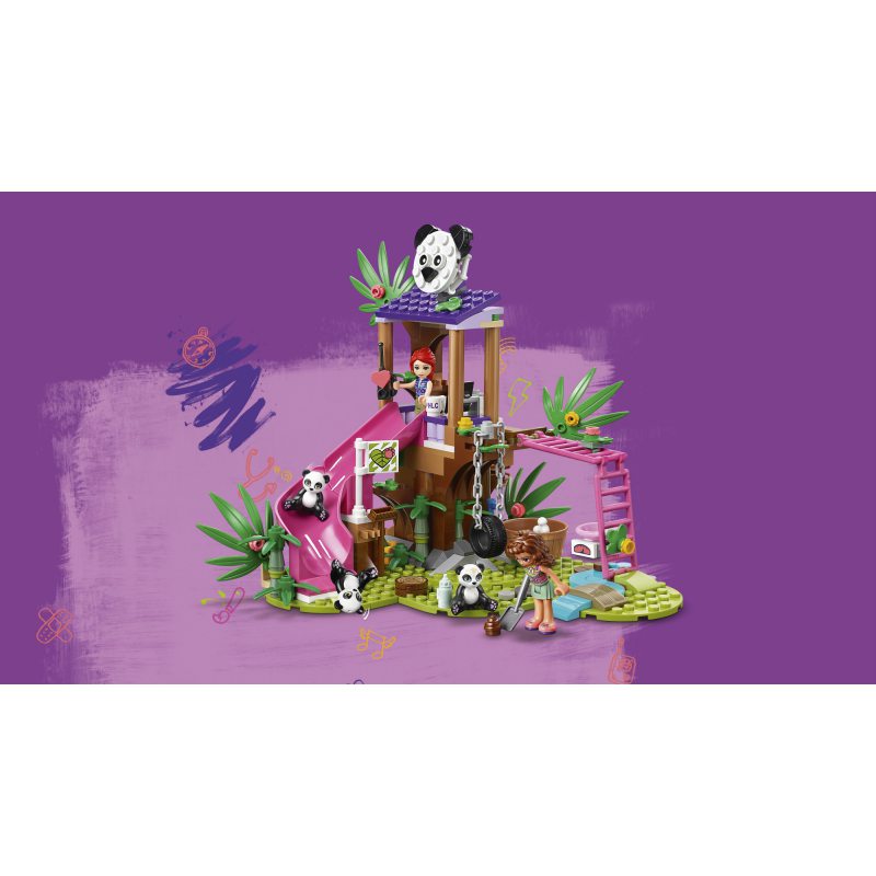 - To tylko jedna z wielu niezwykłych zabawek LEGO® Friends, które opowiadają historie misji ratunkowych w dżungli. Dzieci mogą wraz ze zbudowanymi figurkami przeszukiwać las, wozić małe pandy drewnianym wózkiem lub spuszczać je ze zjeżdżalni.