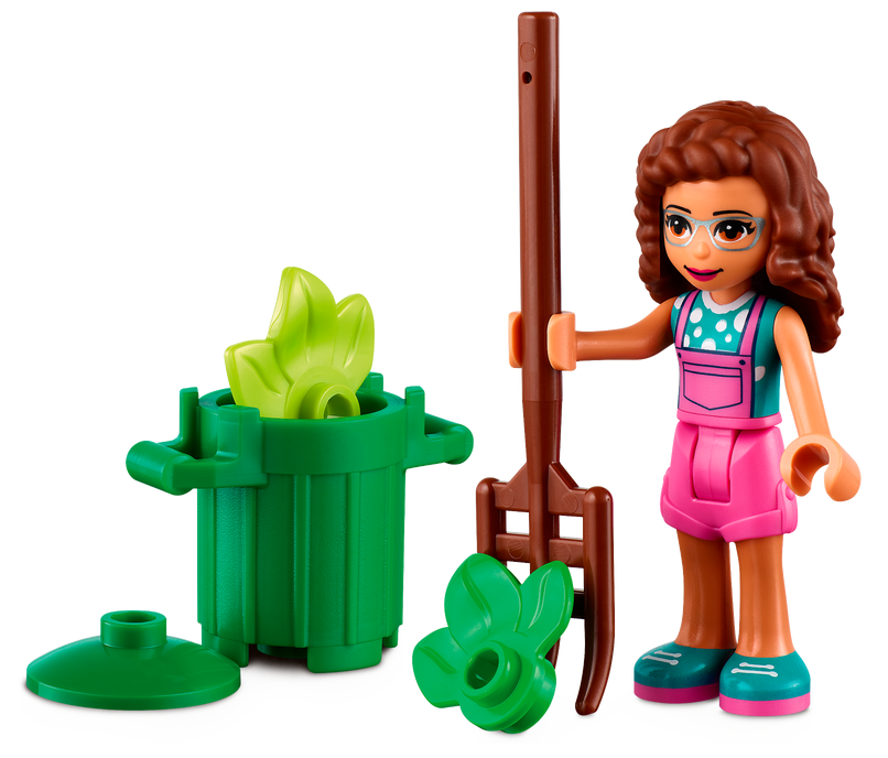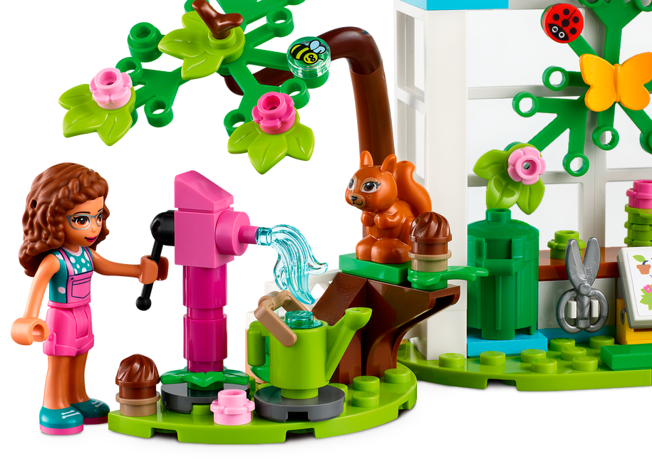- Mnóstwo elementów w opakowaniu — ten prezent LEGO® Friends zawiera dwie minilaleczki, szklarnię, furgonetkę, dużo akcesoriów ogrodniczych i pięć figurek zwierząt dla dzieci